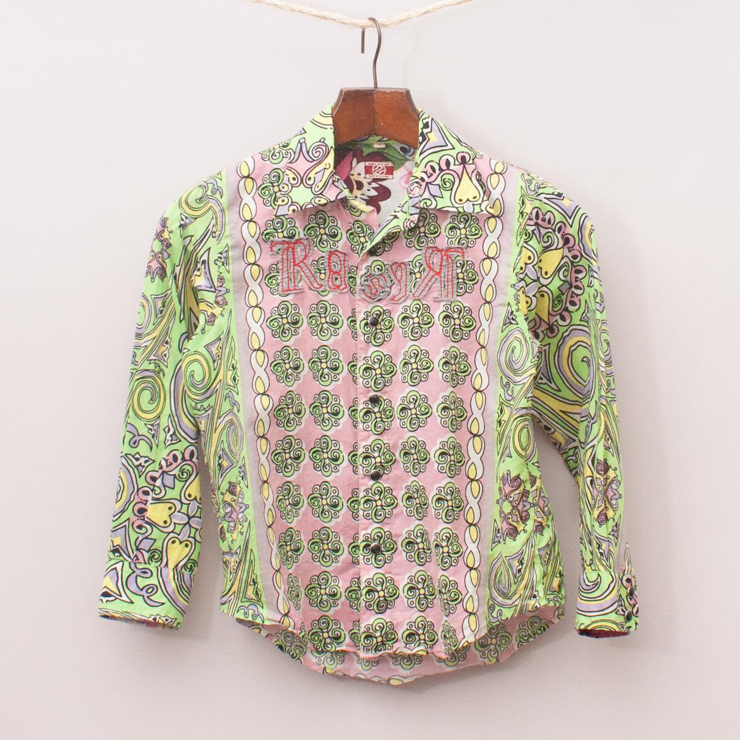 Rare purple and fluro yellow patterned long sleeve shirt with embroidered logo across the font and full button down front *100% Cotton