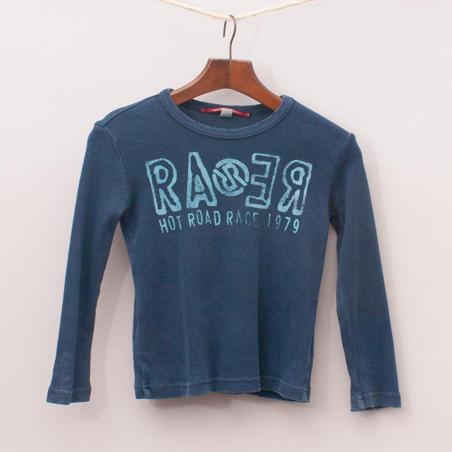 Rare blue ribbed long sleeve with printed logo across the front *100% Cotton