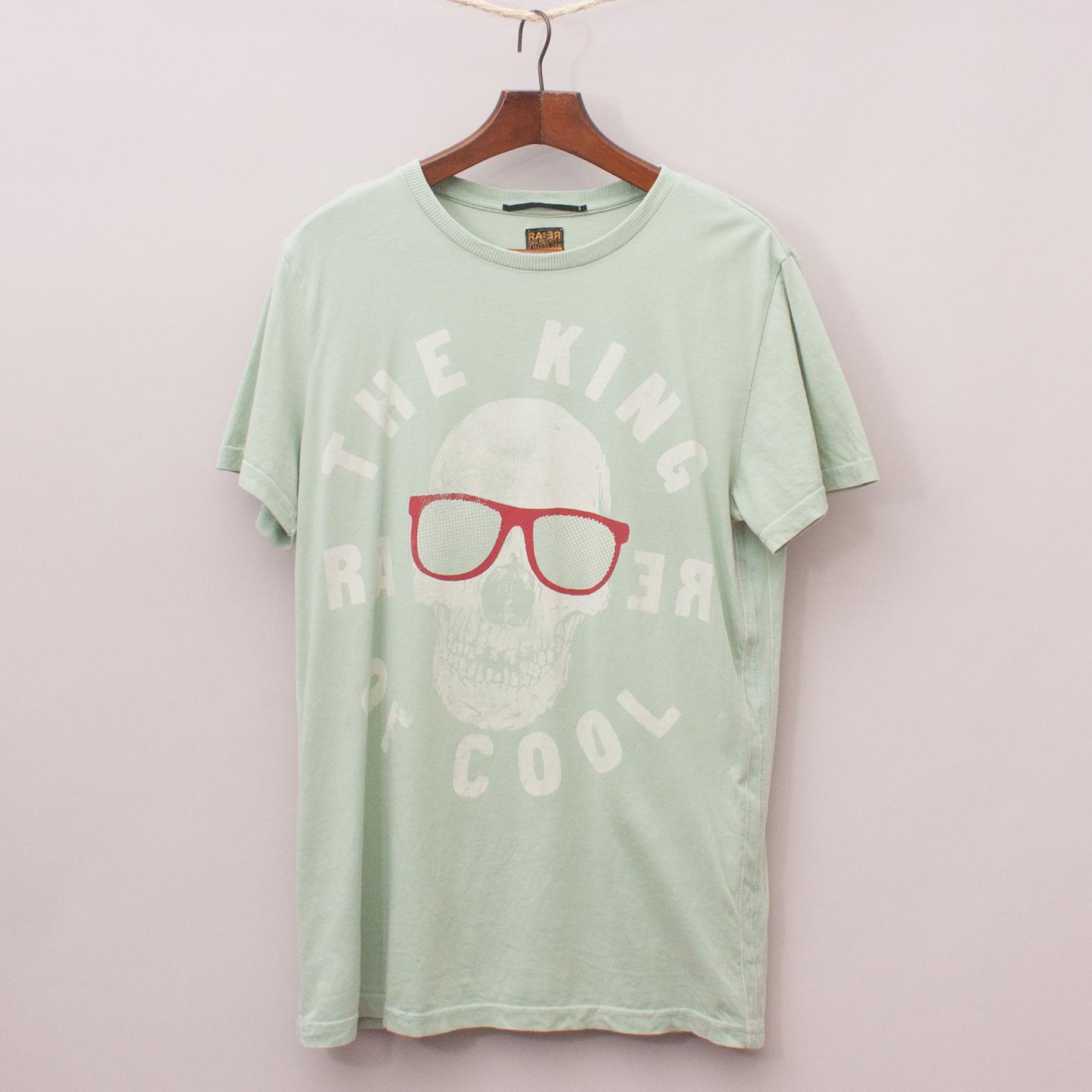 Rare pastel green t-shirt with printed scull on the front, red sunglasses and ribbed neckline *100% Cotton