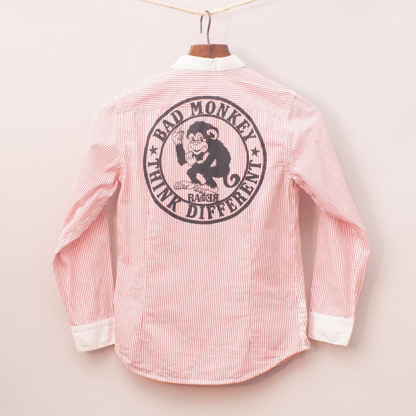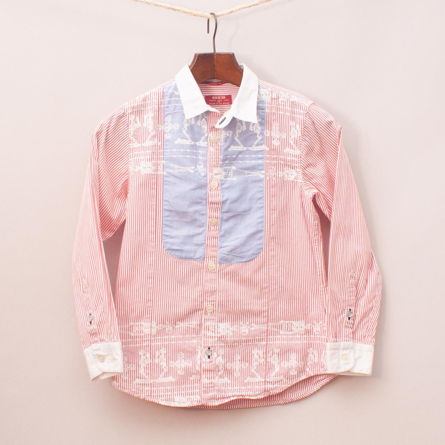 Rare red and white striped shirt with printed images throughout and light blue front detail *100% Cotton