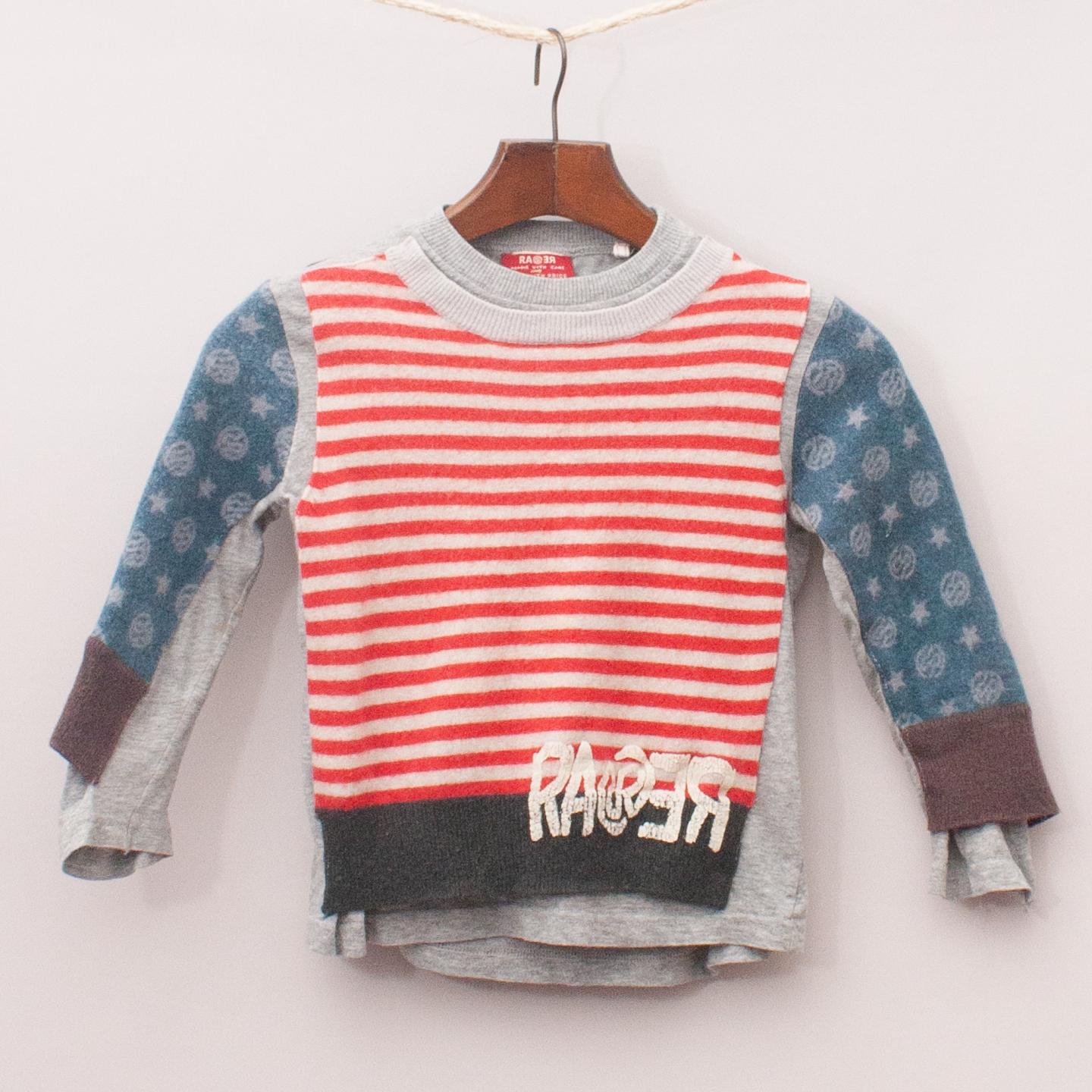 Rare red and white striped jumper with blue patterned sleeves, argyle patterned back and grey underlayer *60% Cotton, 30% Lambs Wool, 10% Nylon