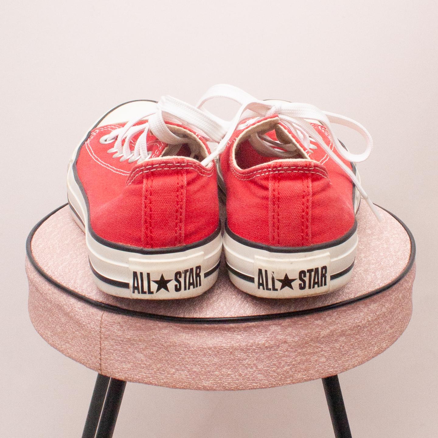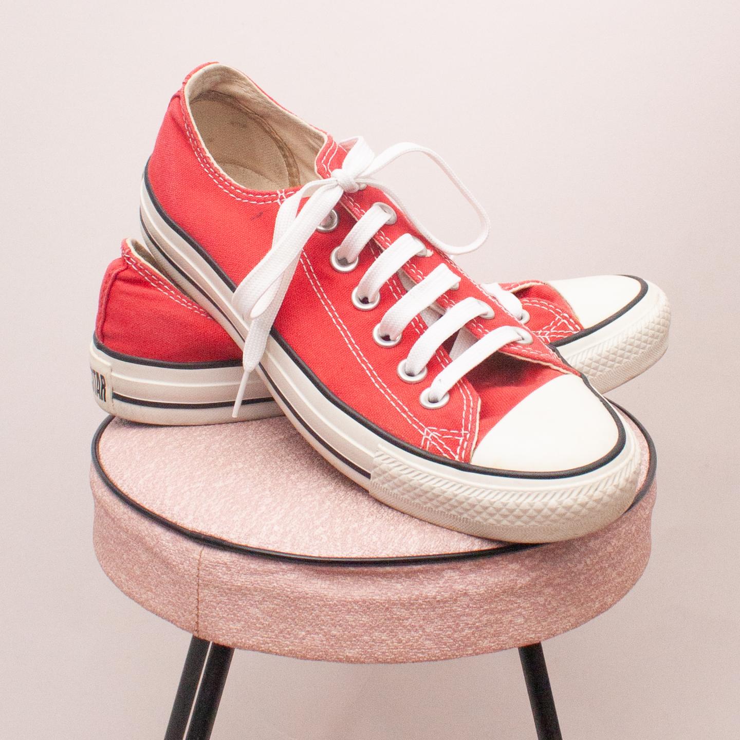 Red Converse sneakers with white laces and strudy rubber soles - Size EU 37 (Age 10 approx.)