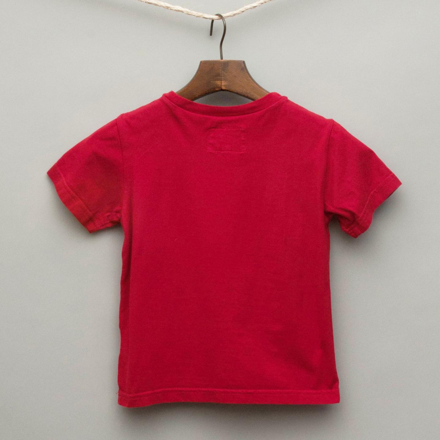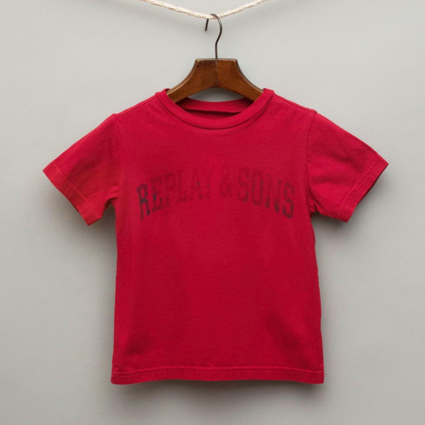 Replay red t-shirt with faded wording on front