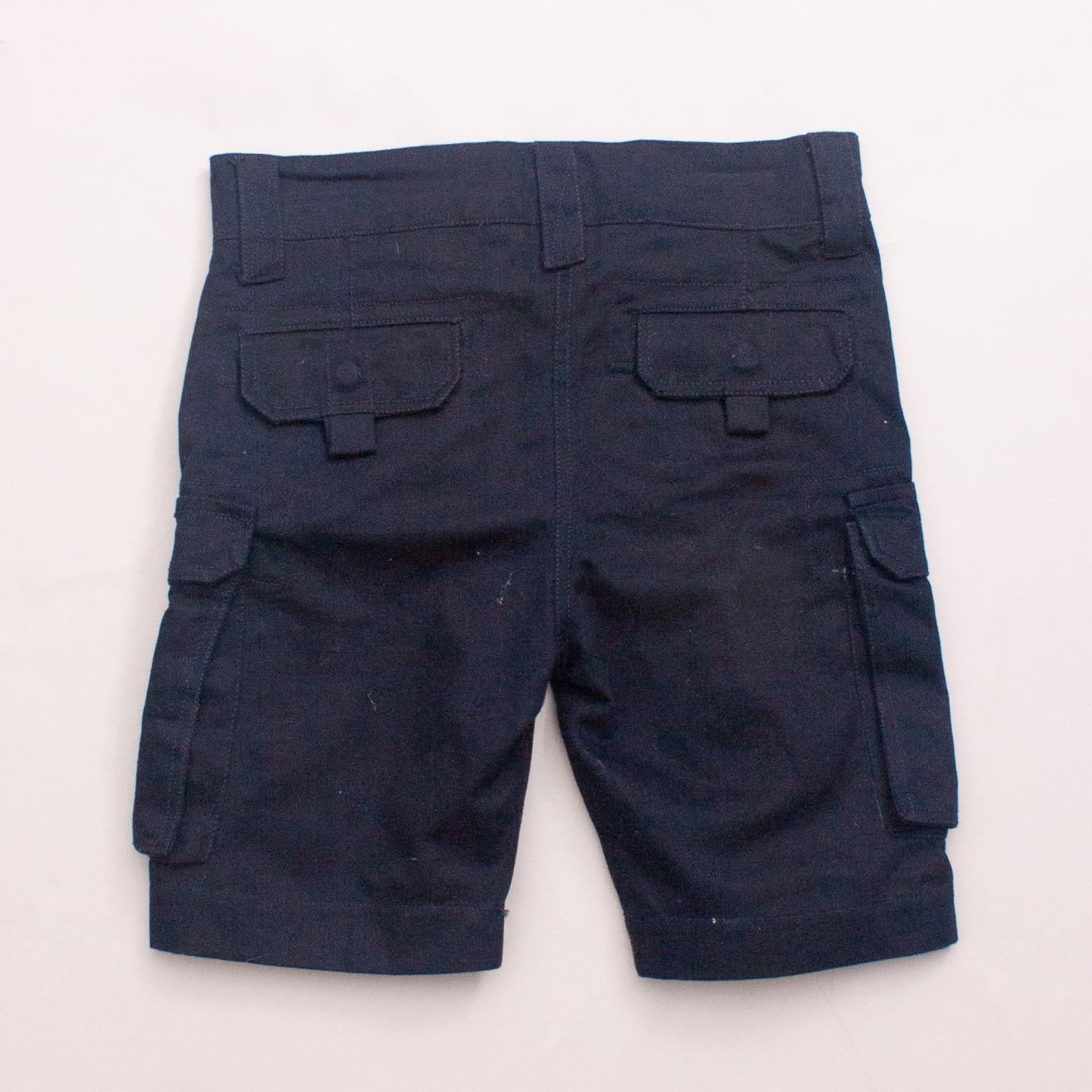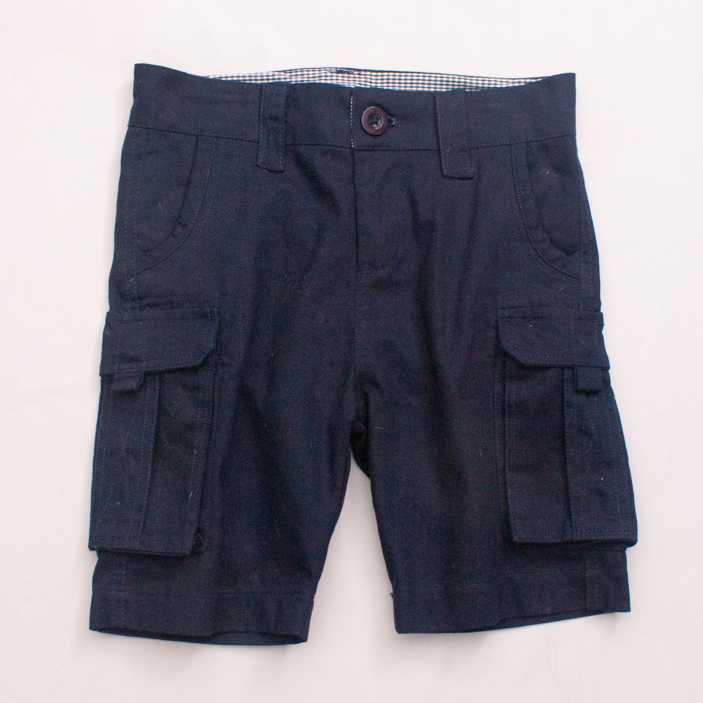Rhubarb navy blue cargo shorts with multiple pockets, belt loops and button/zip fastening *100% Cotton
