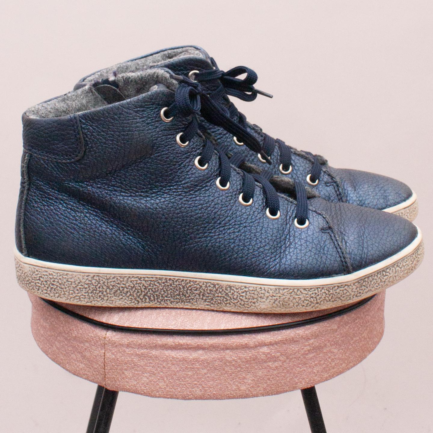 Richter navy blue leather lace up's with side zip closure and sturdy rubber soles - Size EU 37 (Age 8 approx.)