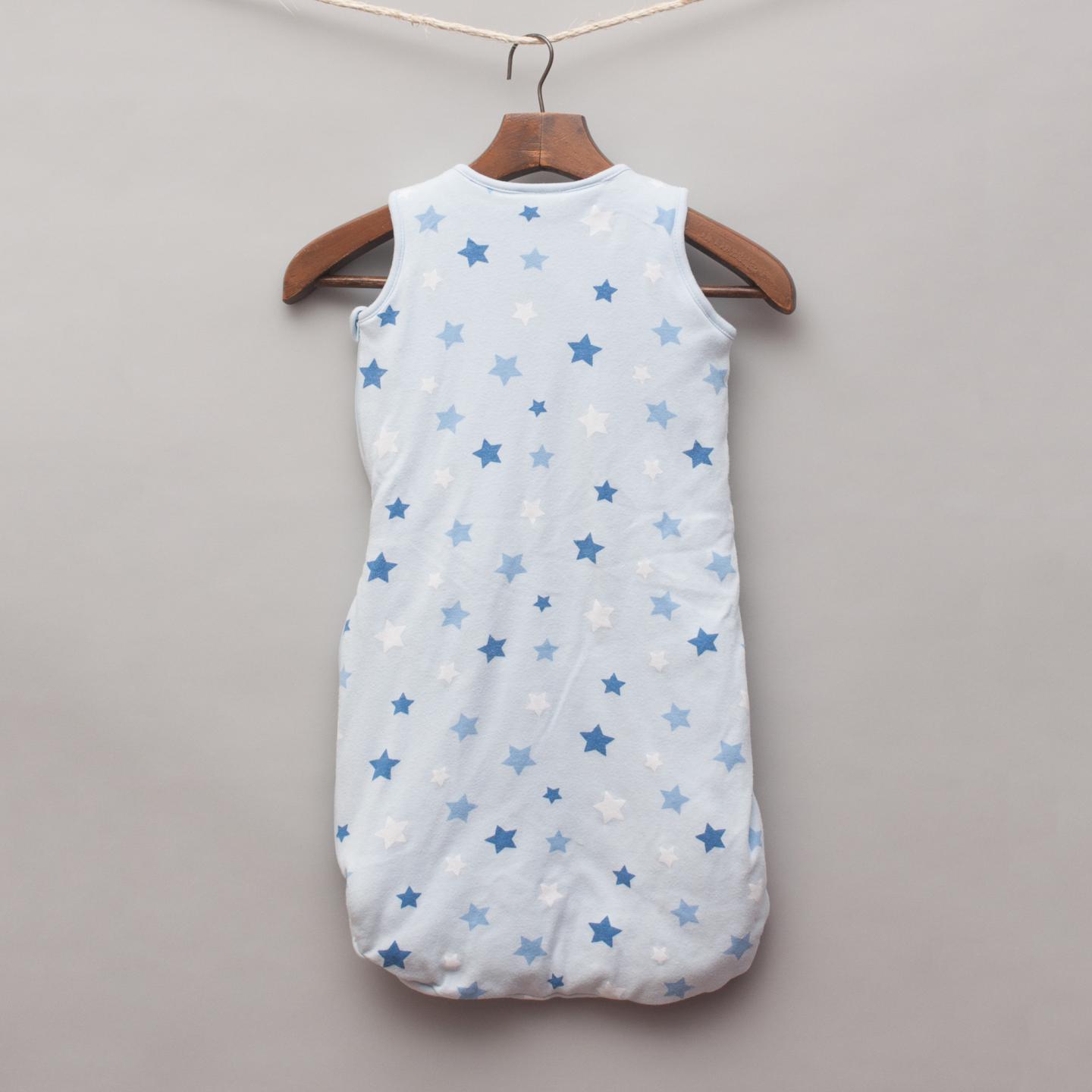 Ricochet blue sleep sack with star print throughout and shoulder button closures (Approximately Size 00)