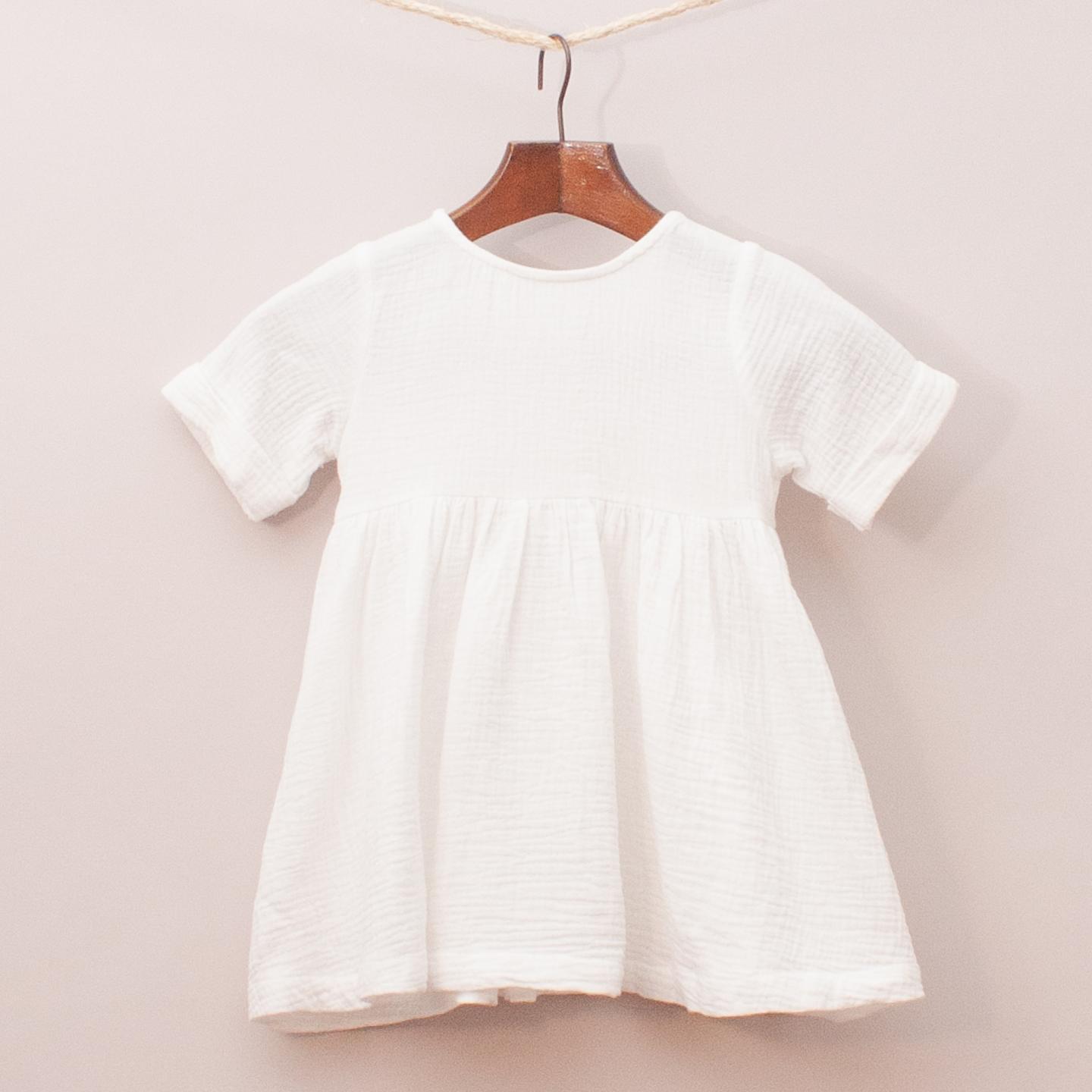 Romper & Co. white sundress with rolled cuffs, gathered skirt and button down front *100% Cotton