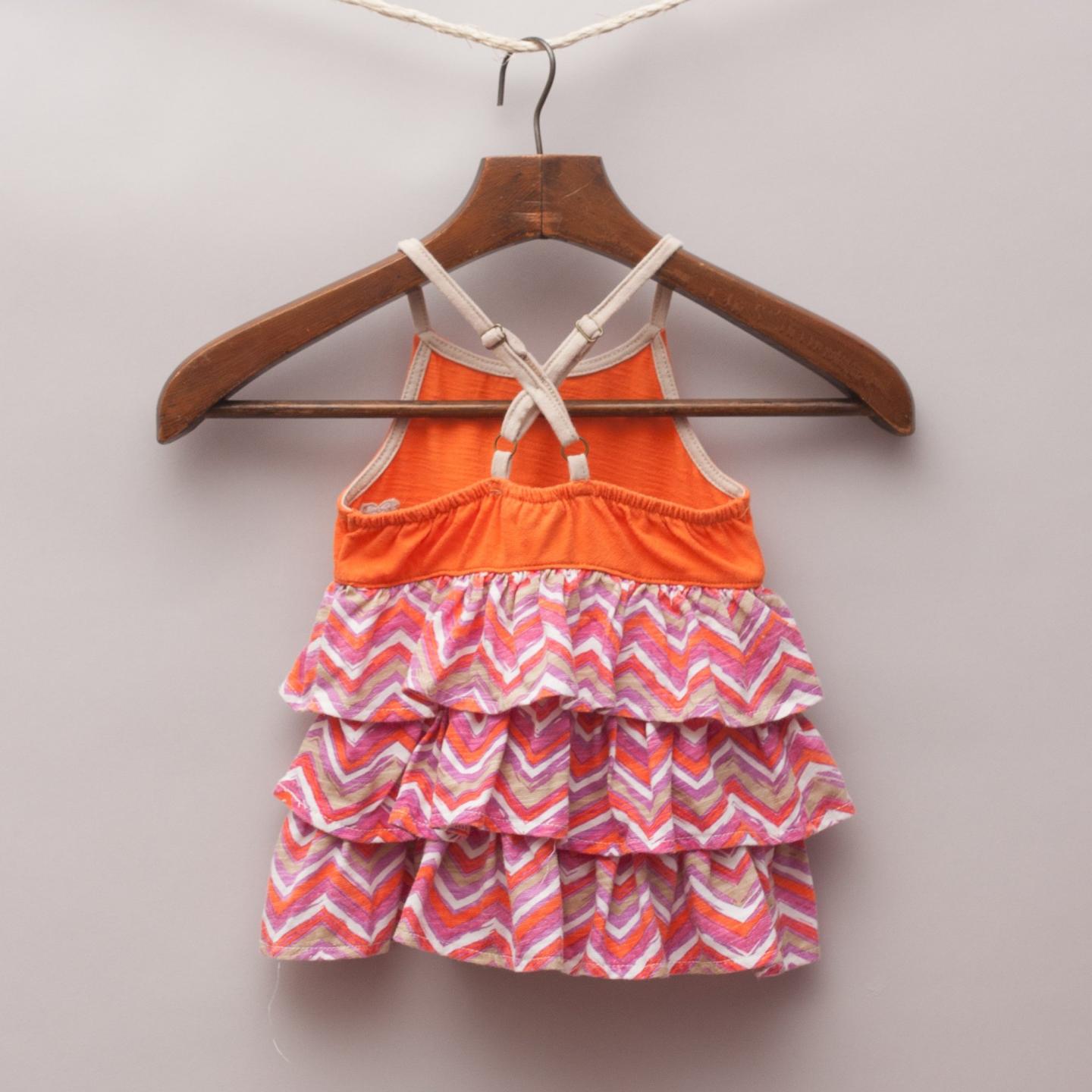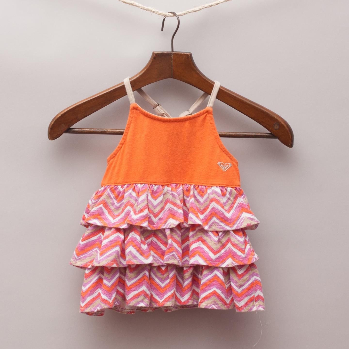 Roxy orange singlet with pink, white and orange ruffles, elastic back and adjustable straps