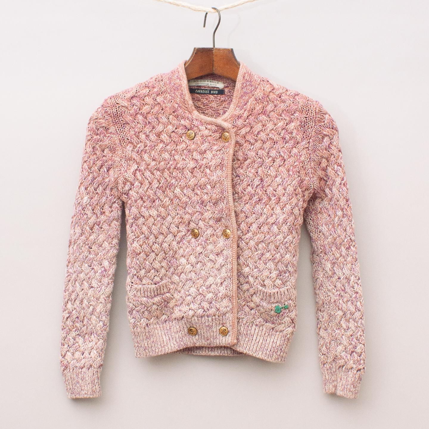 Scotch R'Belle pastel pink toned cardigan with two front pockets and gold scull detailed buttons *100% Cotton