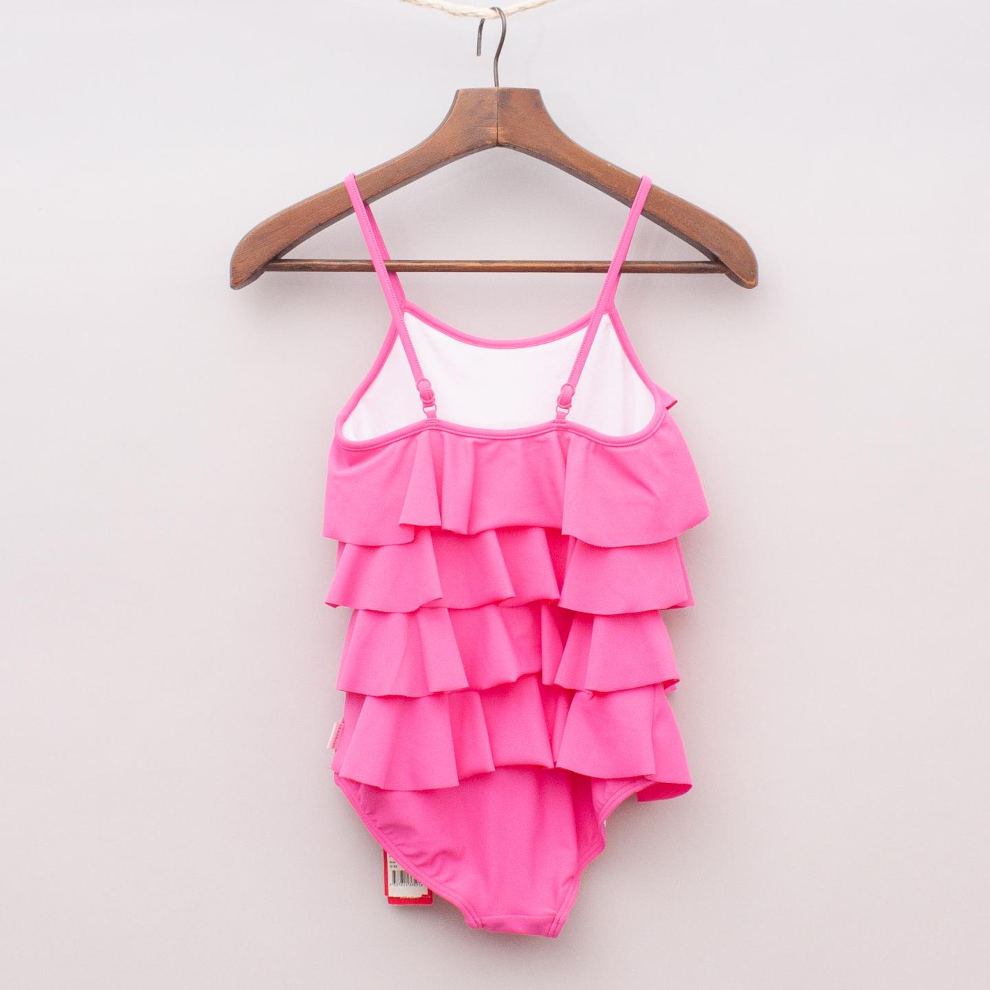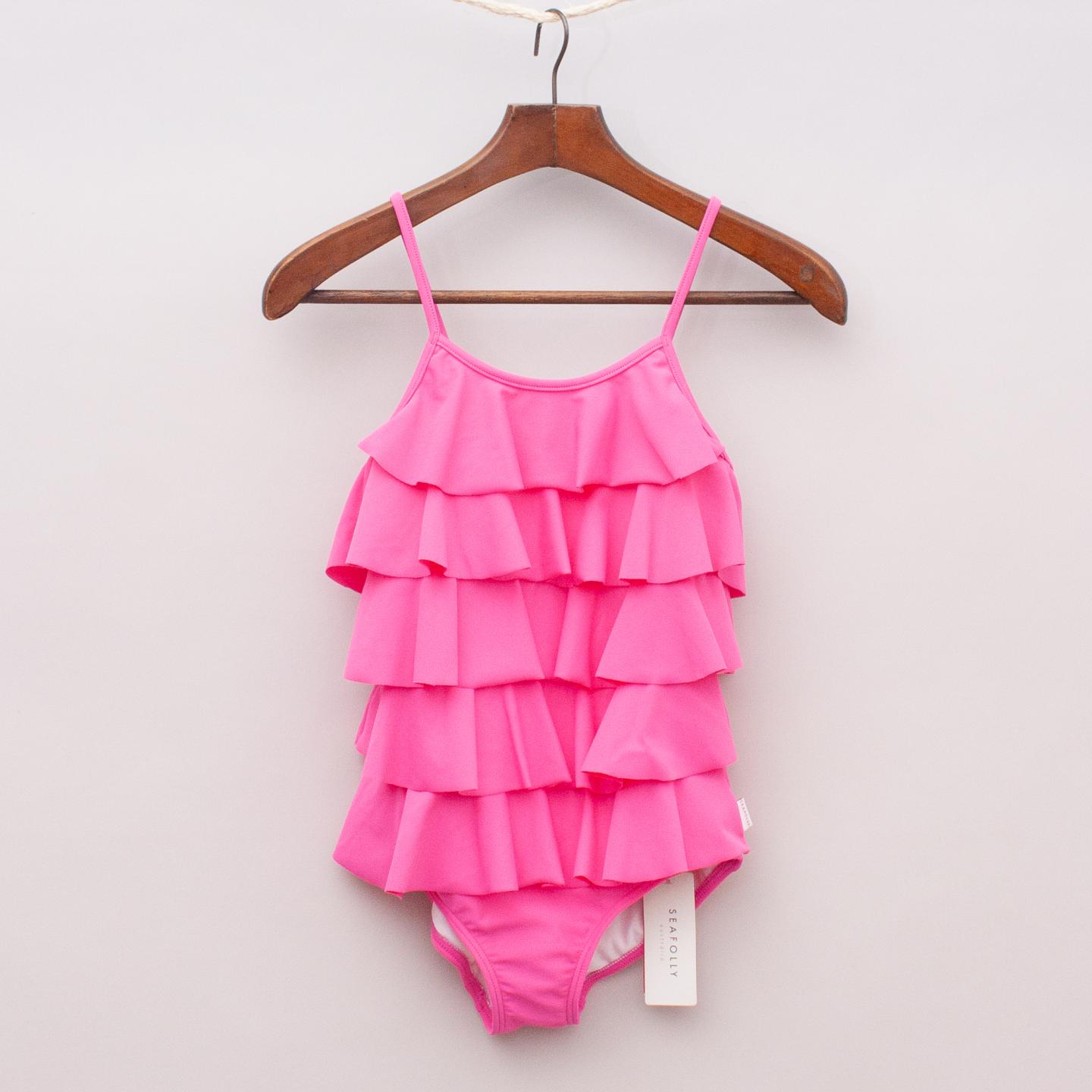 Seafolly "brand new with tags" bright pink one piece bathers with layered ruffles and adjustable straps