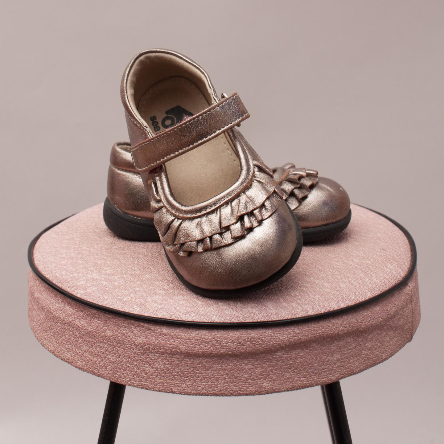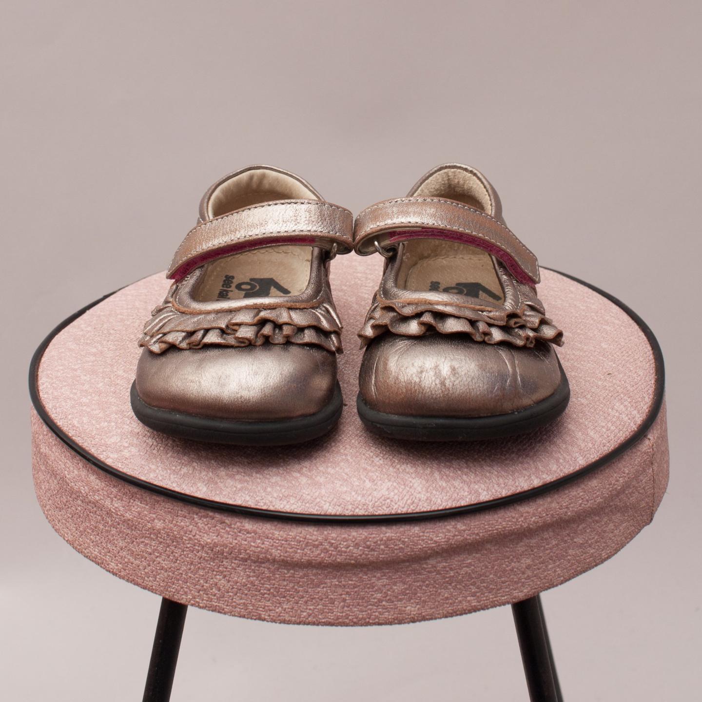 See Kai Run pewter metallic shoes with ruffle details, rubber sole and velcro strap closure - Size US 6 (0-12Mths Approx.) *Some signs of wear