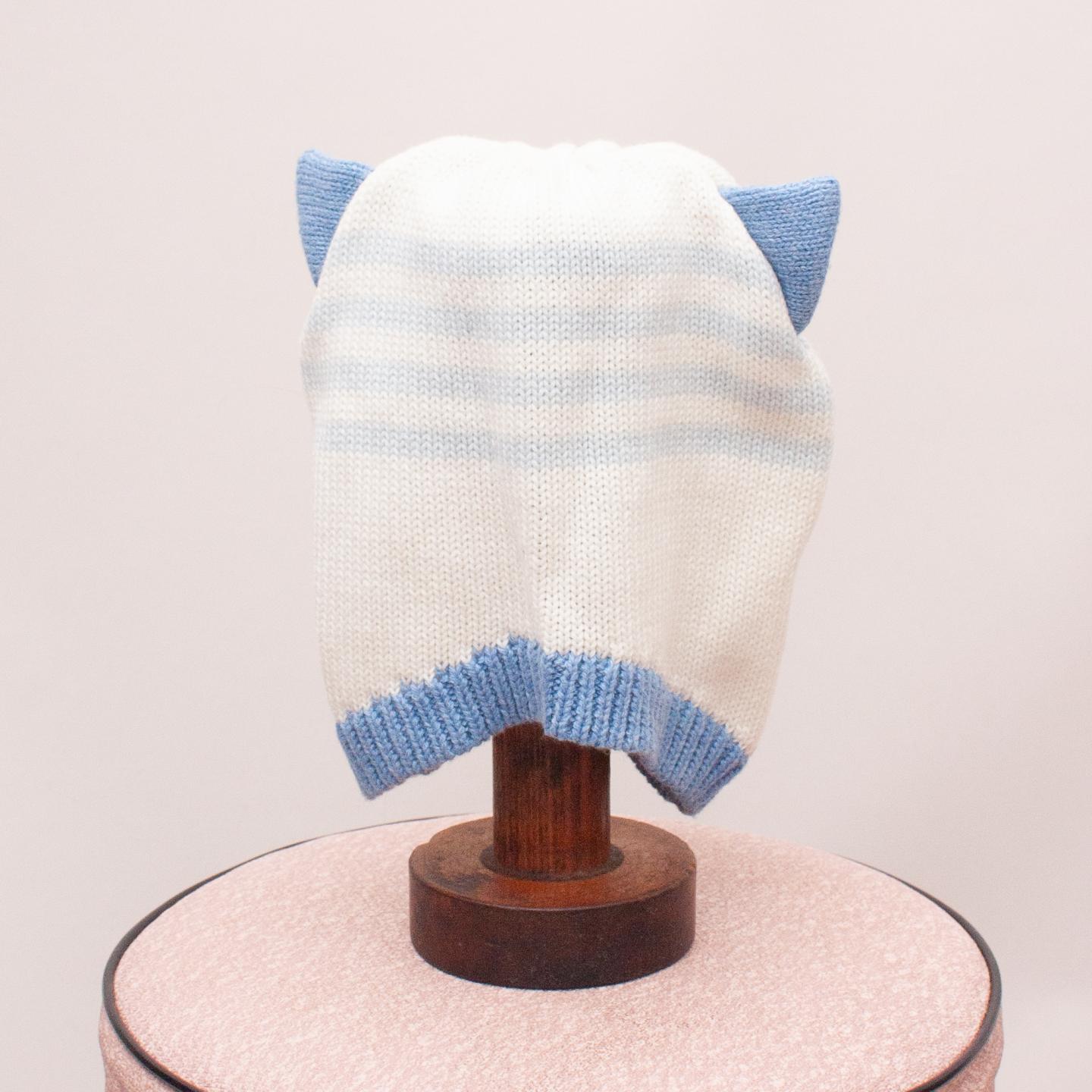 Seed white and pastel blue baby beanie with stripes and little ears - Size Newborn 0000