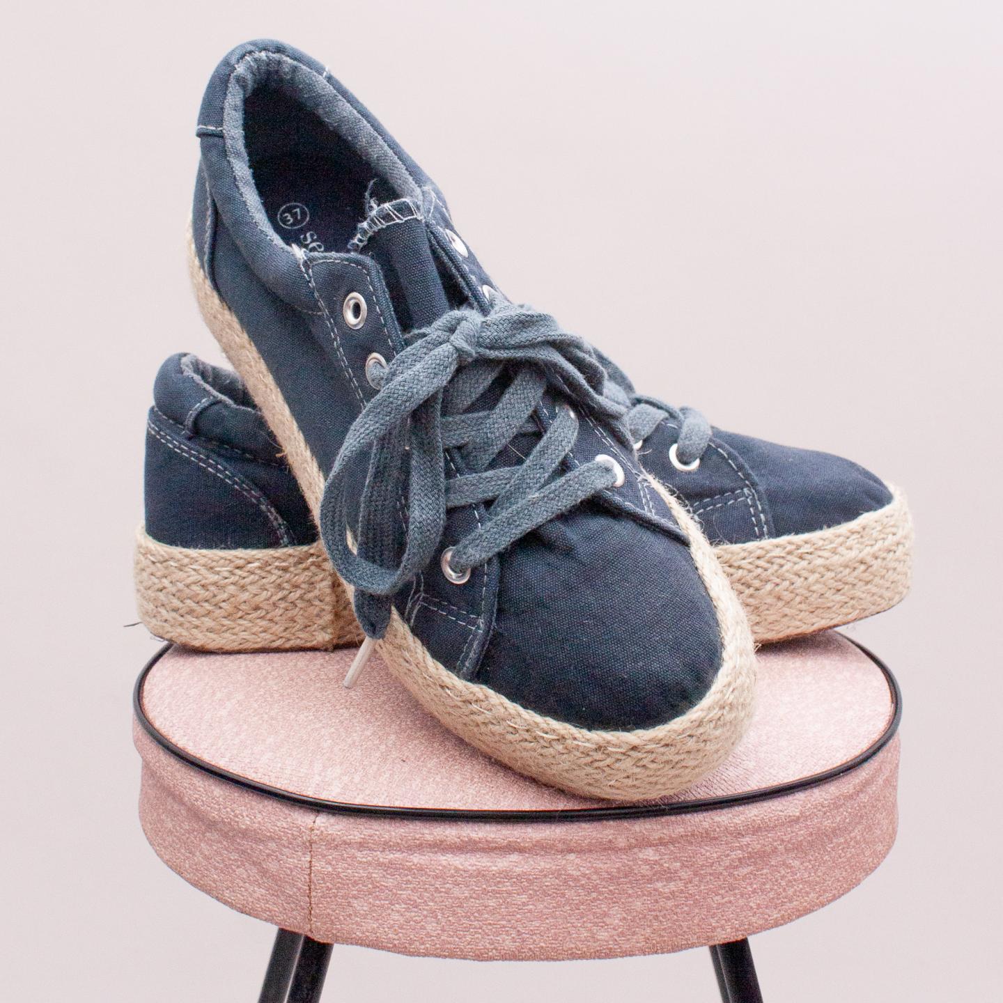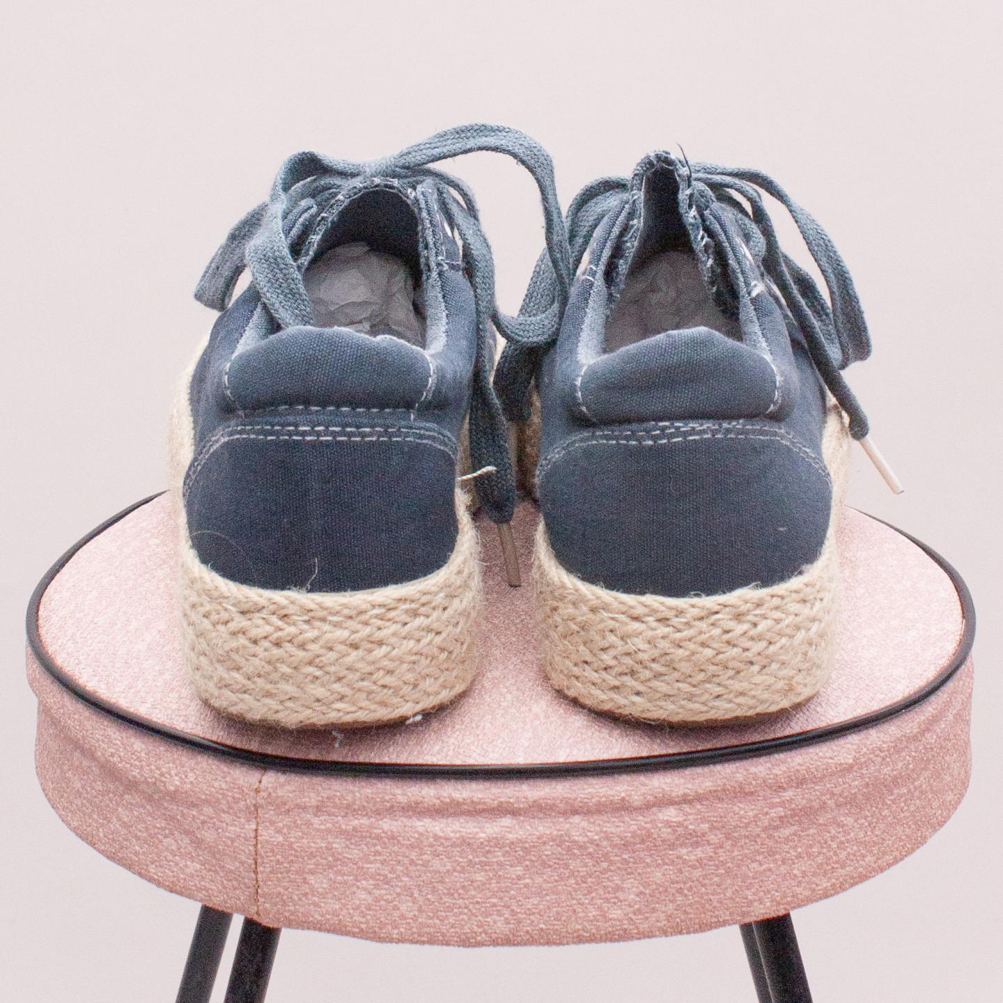 Seed "brand new without tags" navy blue espadrilles with thick rubber and rope soles, blue laces and silver hardware - Size EU 37 (Age 8 approx.)