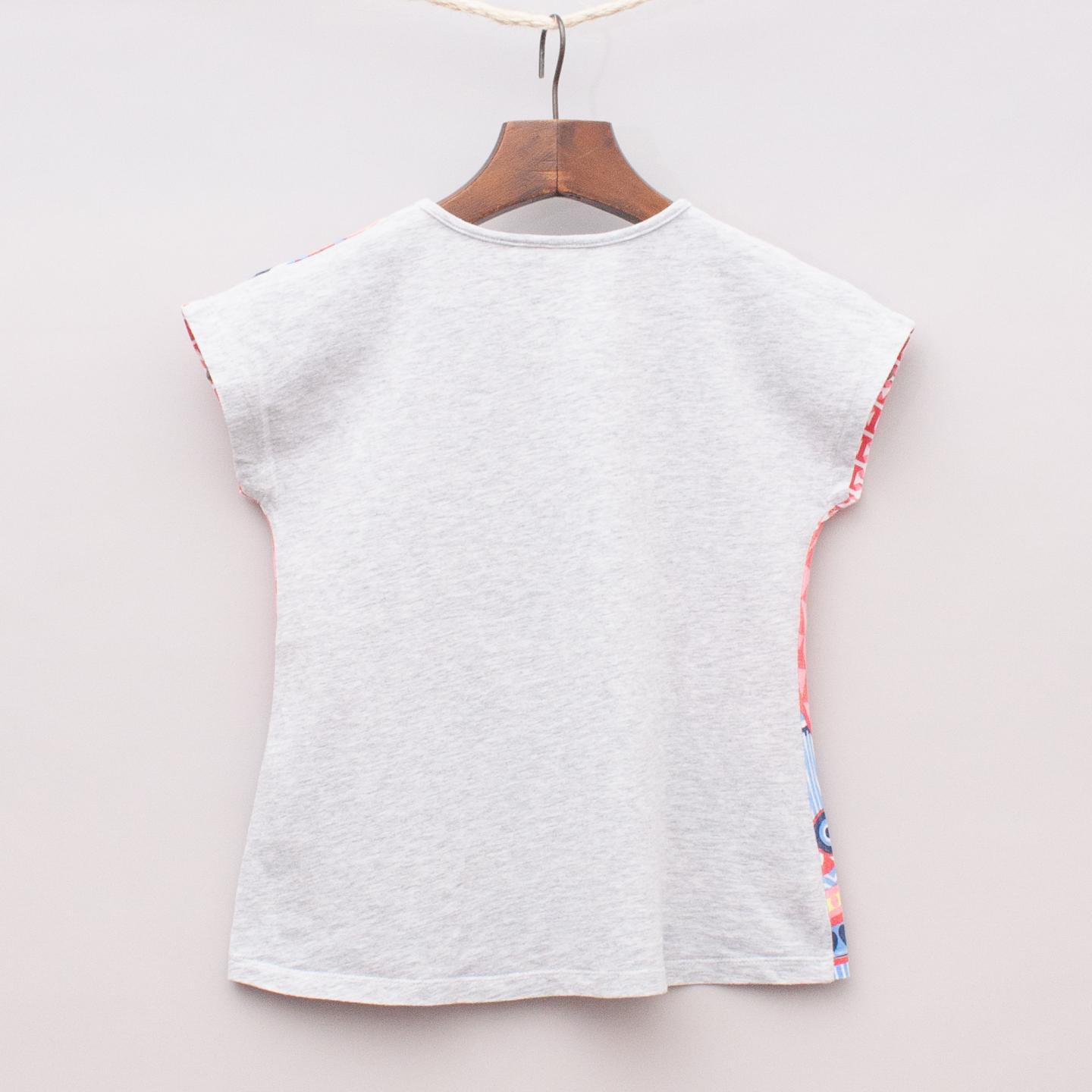 Seed colouful kalaidescope owl t-shirt with cap sleeves and plain grey back
