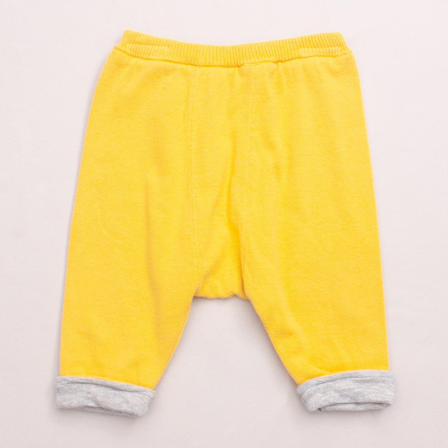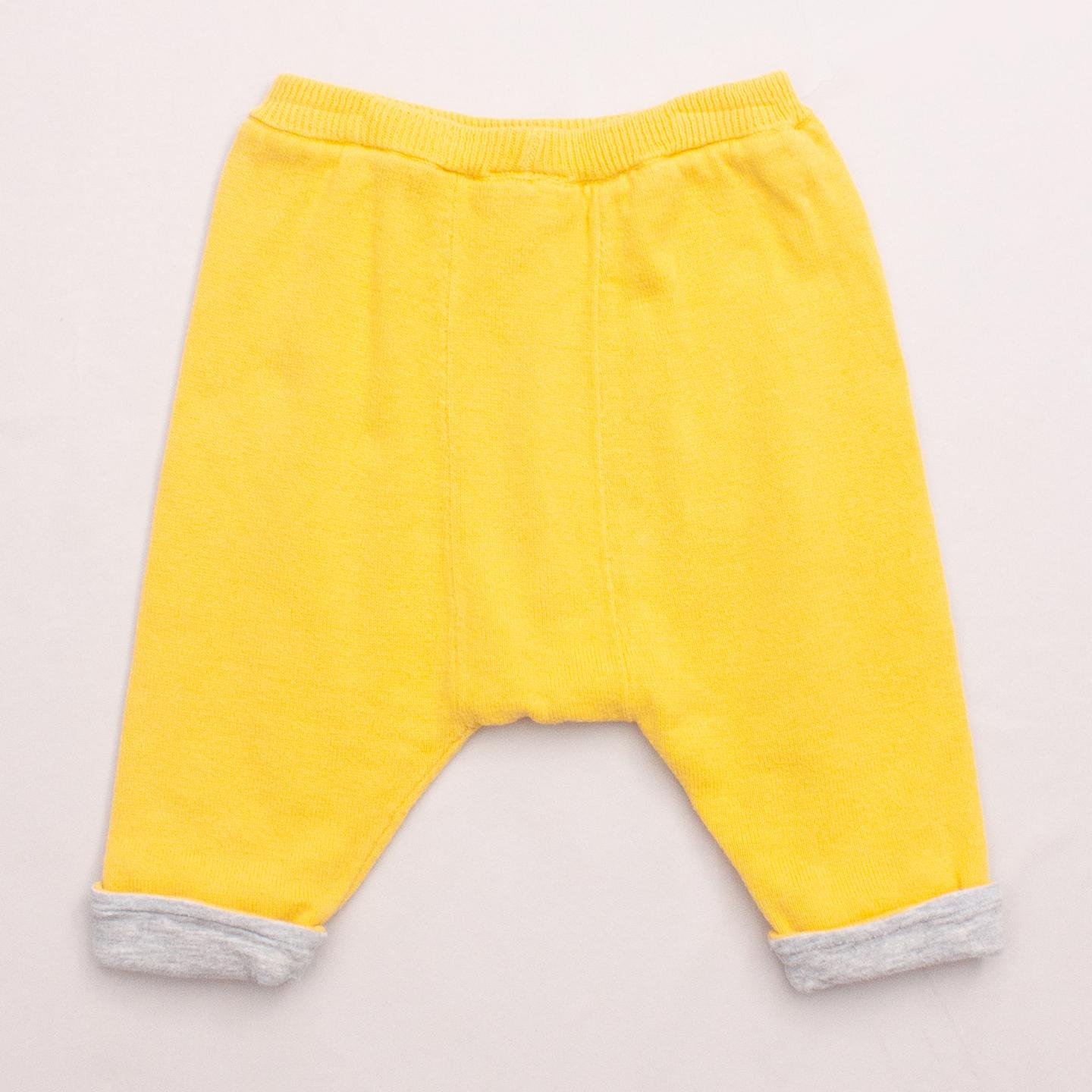 Seed yellow knit pants with grey rolled cuffs and elastic waistband *100% Cotton