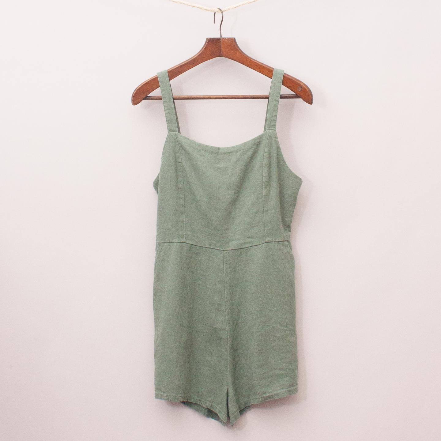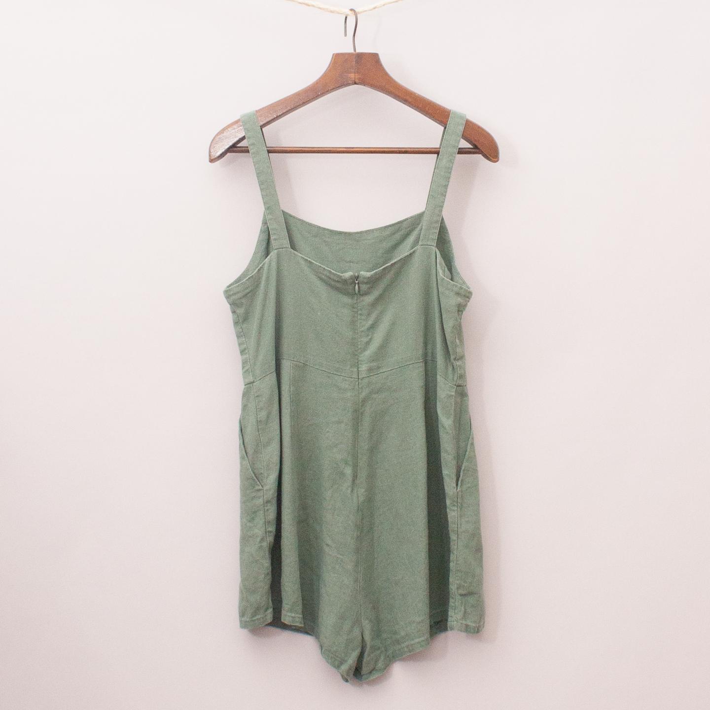 Seed khaki green linen blend playsuit with two side pockets and zip back closure *55% Linen, 45% Viscose