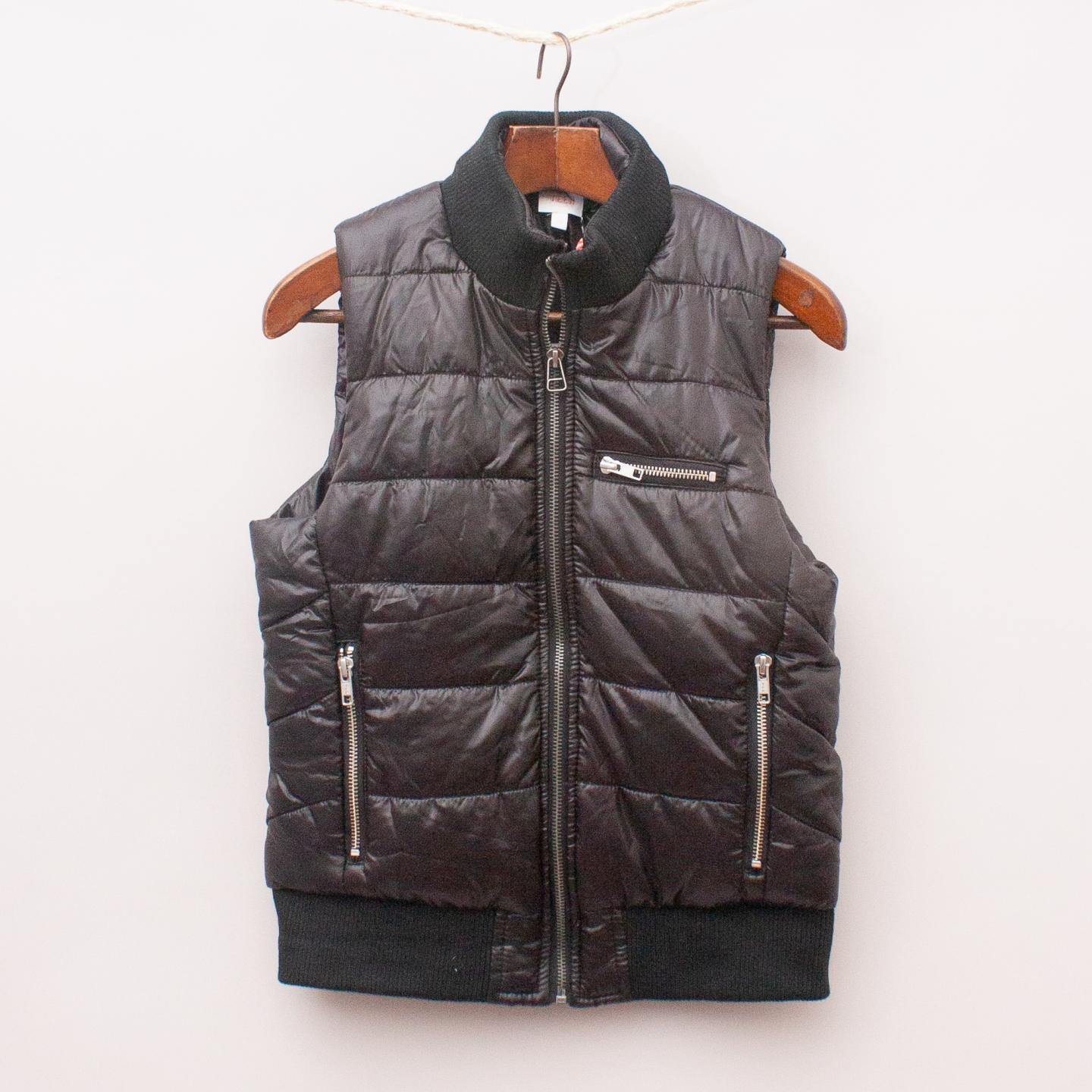 Seed "brand new with tags" black puffer vest with multiple front pockets, high neck collar and full zip up front *100% Polyester