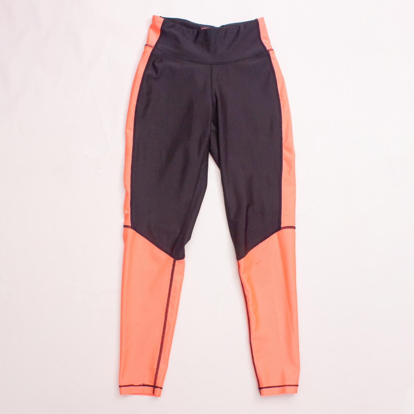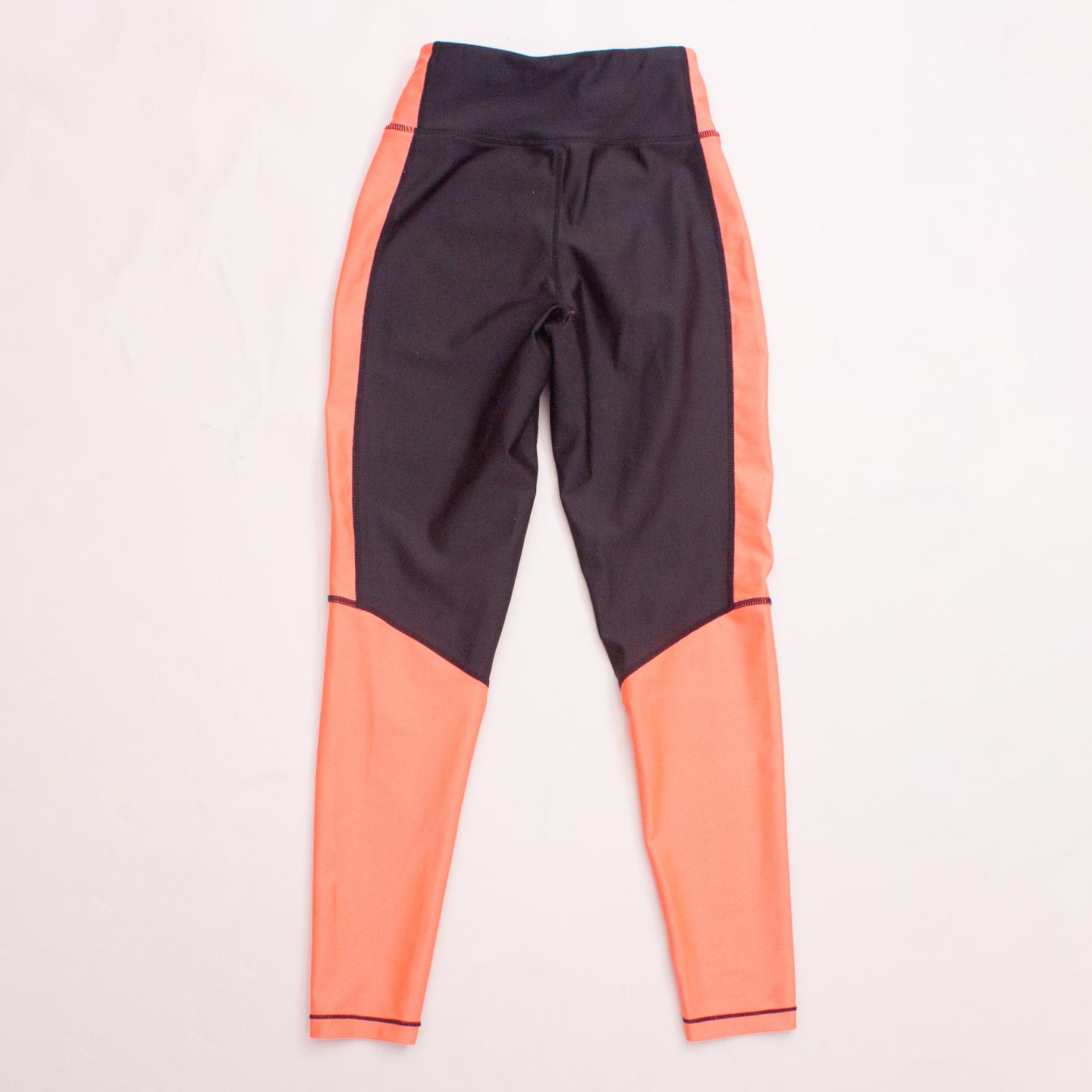 Seed black and bright orange running leggings with exposed stitching detail and elastic waistband *73% Polyester, 23% Elastane