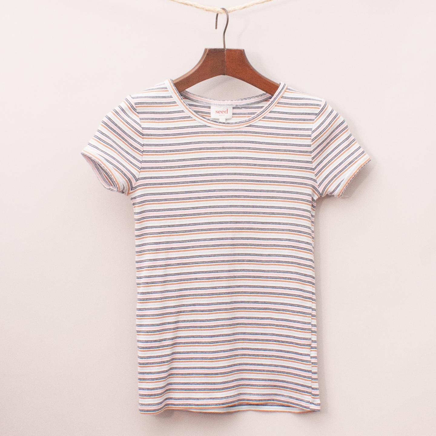 Seed pastel coloured striped ribbed t-shirt *95% Cotton, 5% Elastane