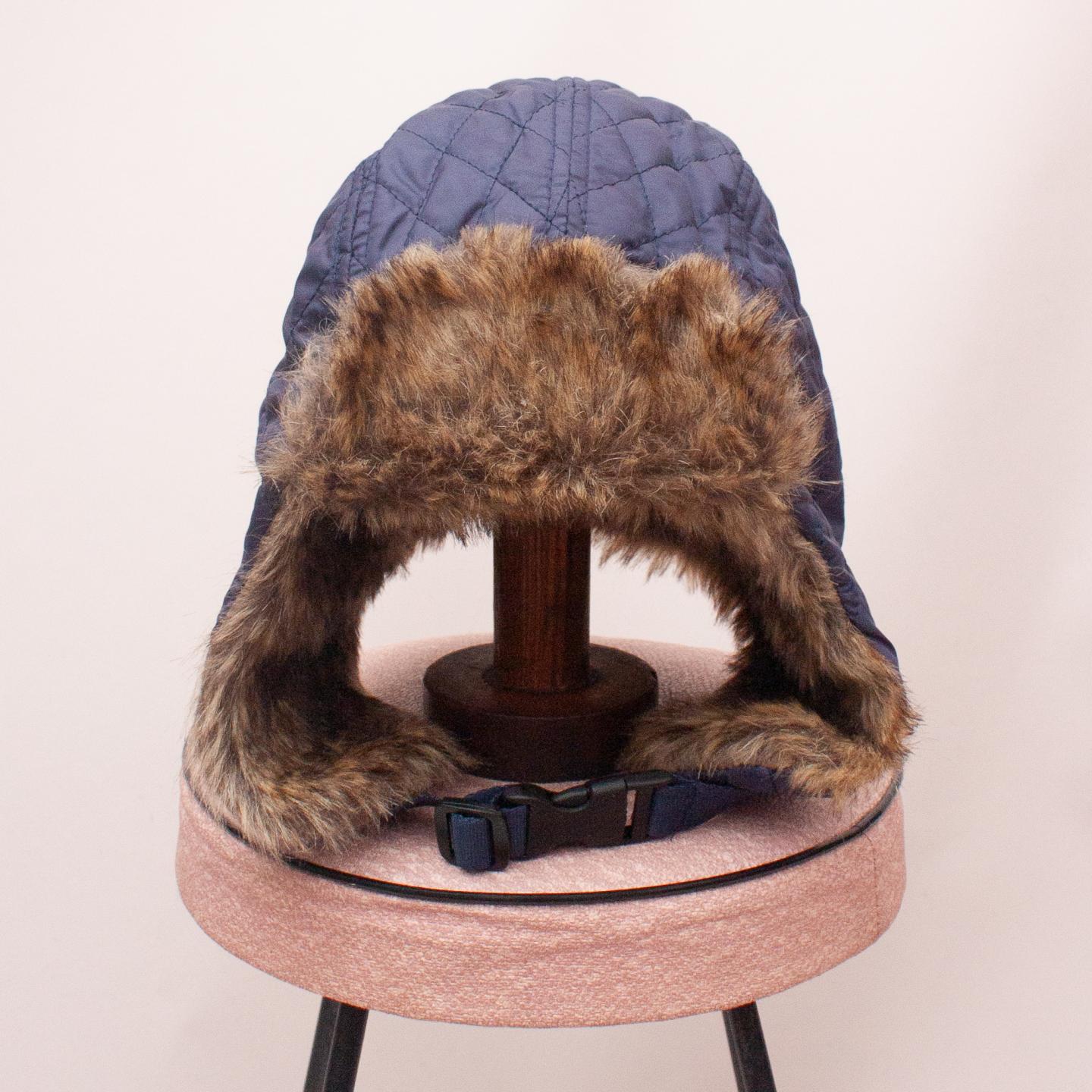 Seed navy blue quilted trapper hat with faux fur lining - marked as O/S most suitable for ages 5-10