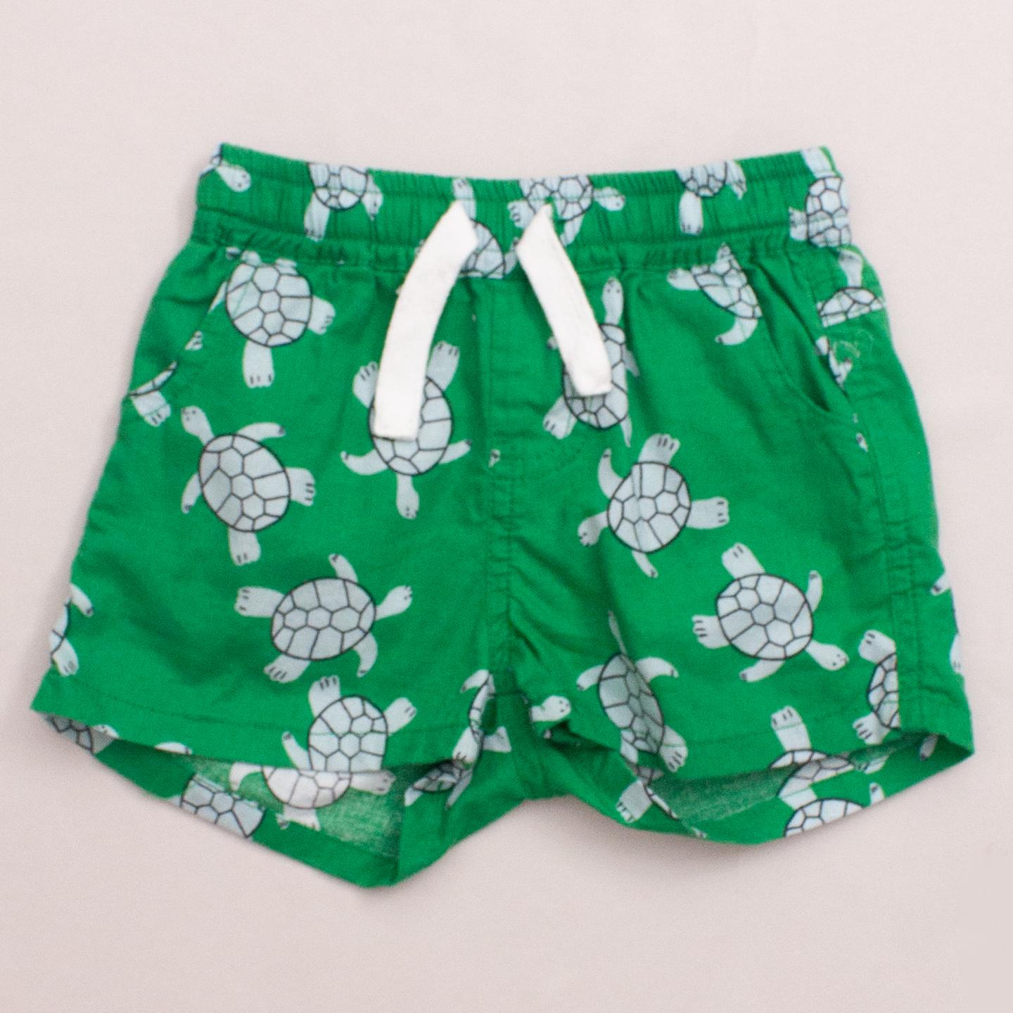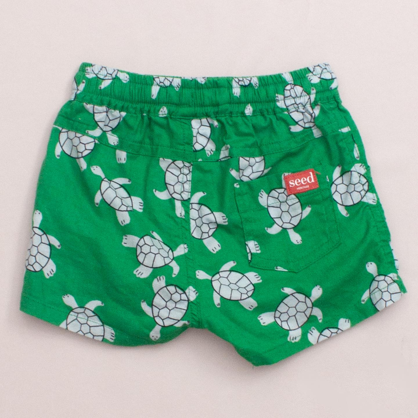 Seed green and turtle patterned shorts with front and back pockets, elastic waistband and drawstring *100% Cotton