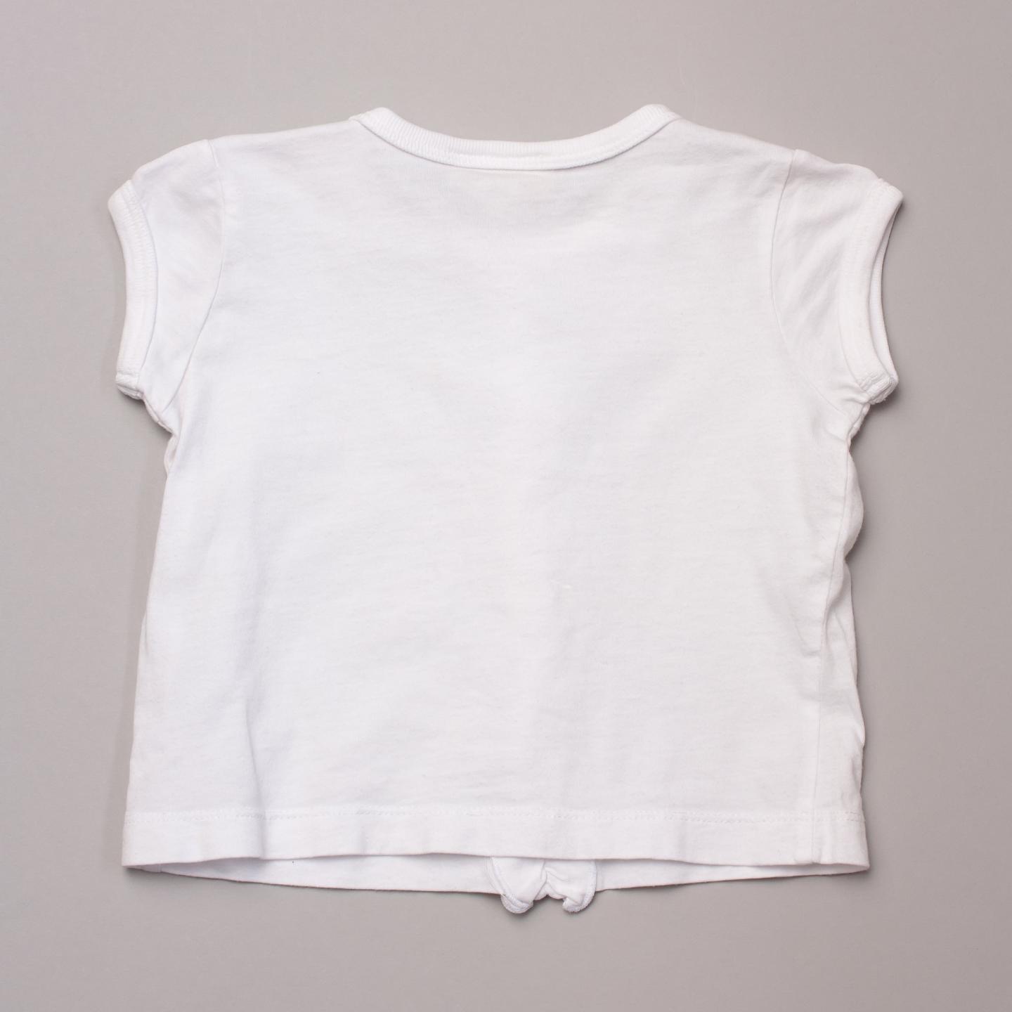 Seed plain white t-shirt with cap sleeves, shoulder button closure and single vertical ruffle down the front