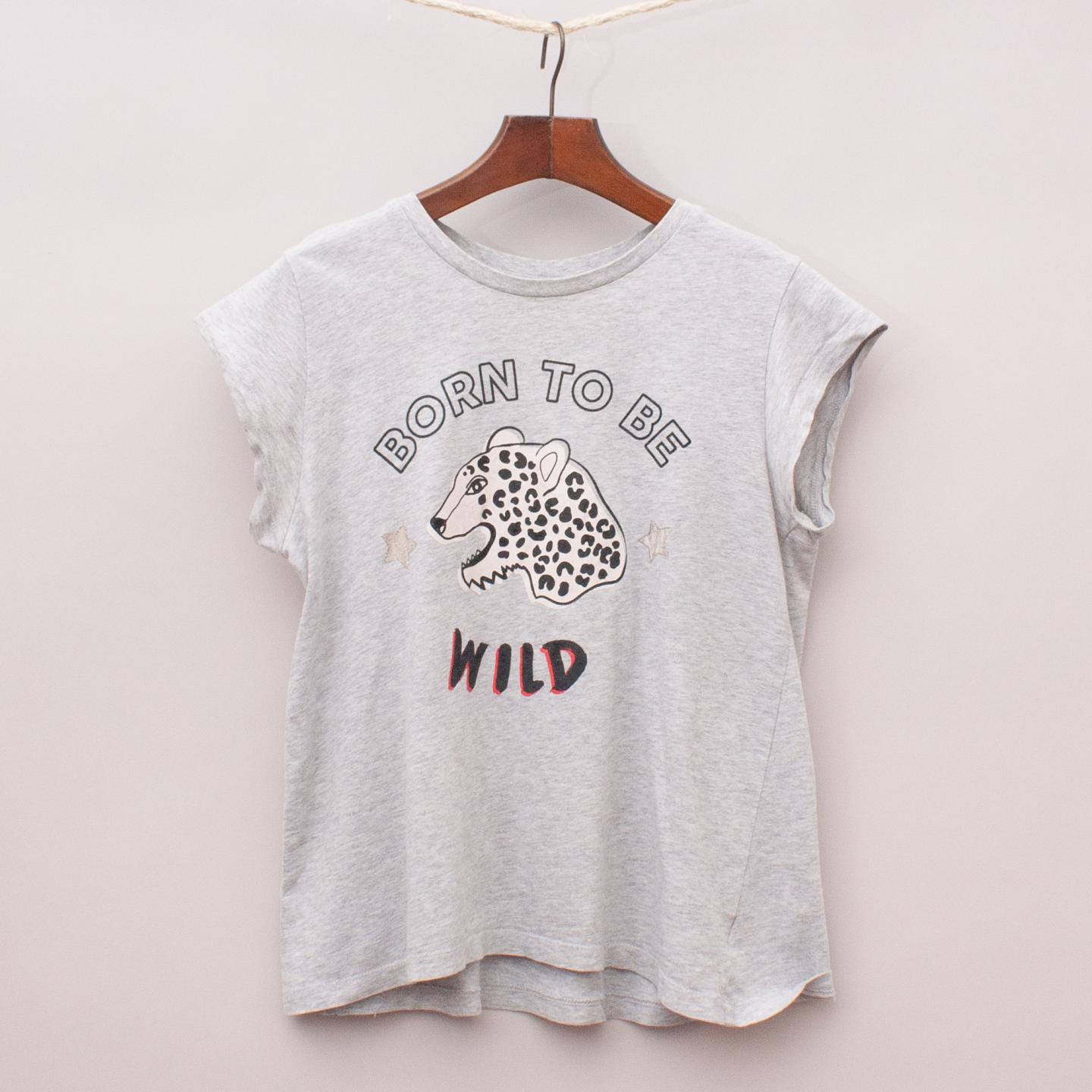 Seed grey t-shirt with printed "wild" slogan on the front and cap sleeves *100% Cotton
