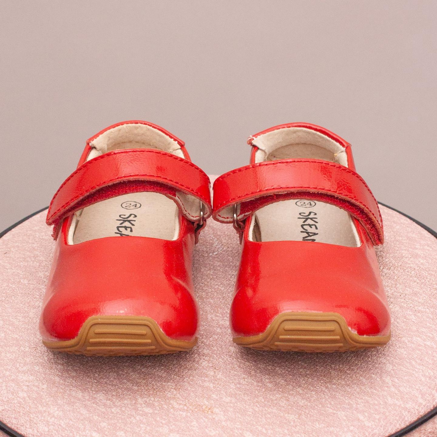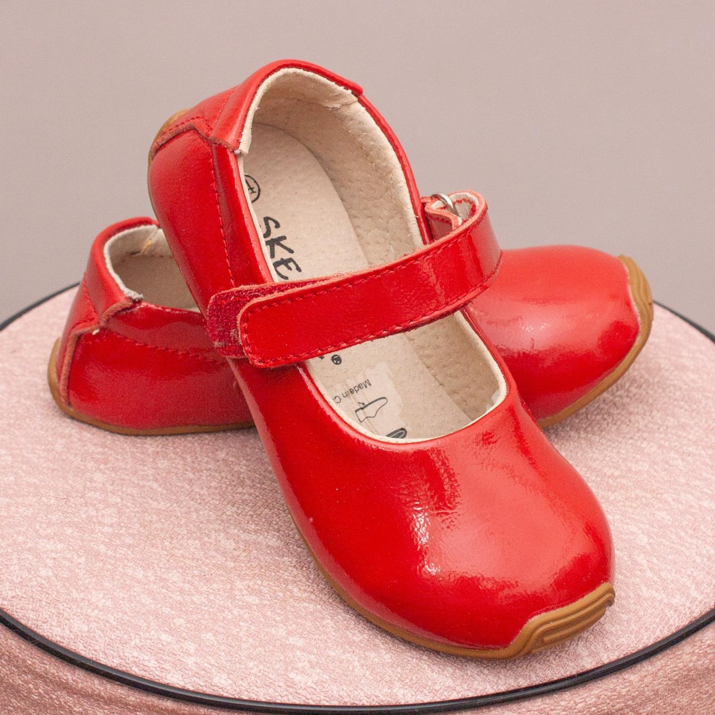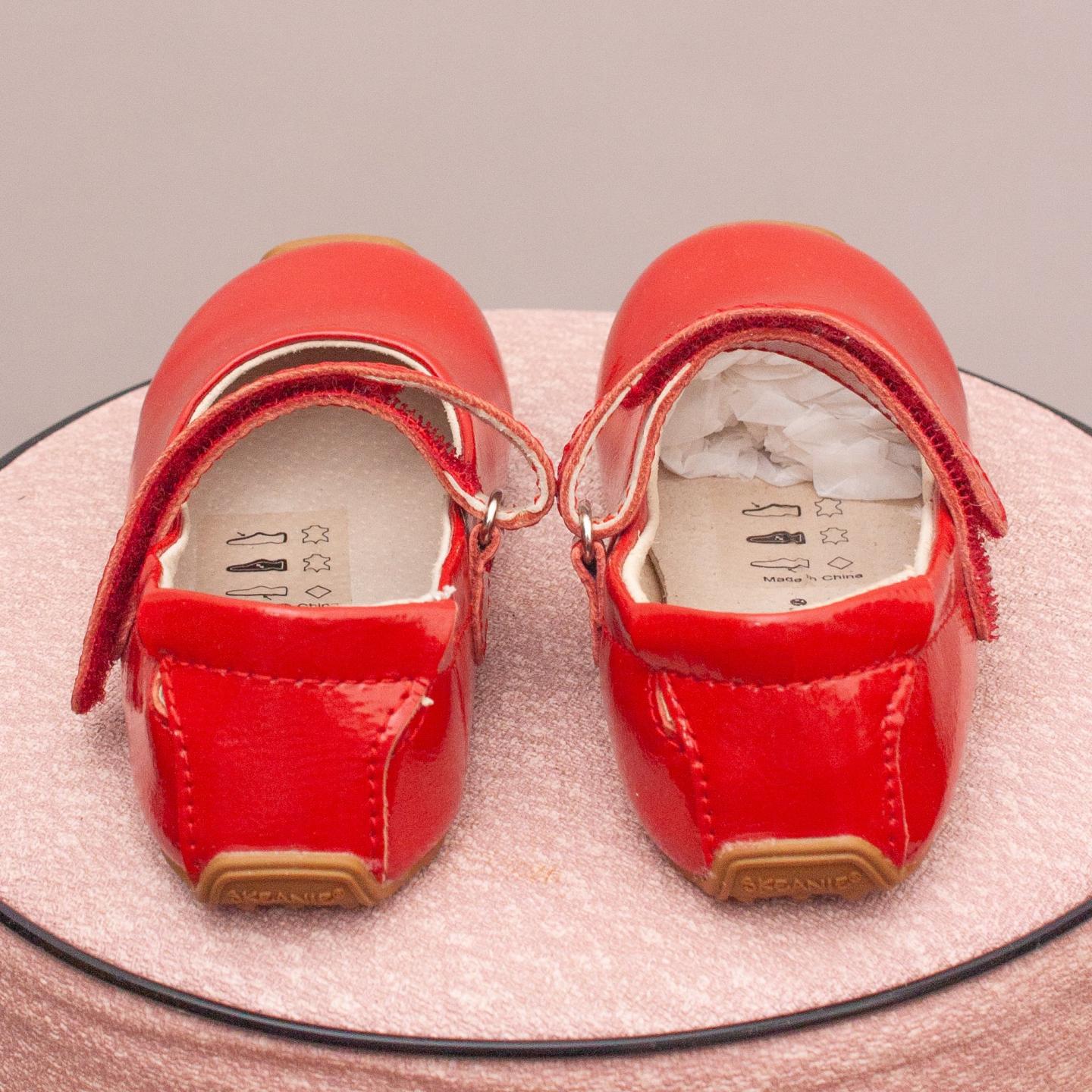 Skeanie "brand new in box" red patent leather shoes with single velcro strap and sturdy rubber soles - Size EU 24 (0-12Mths Approx.)