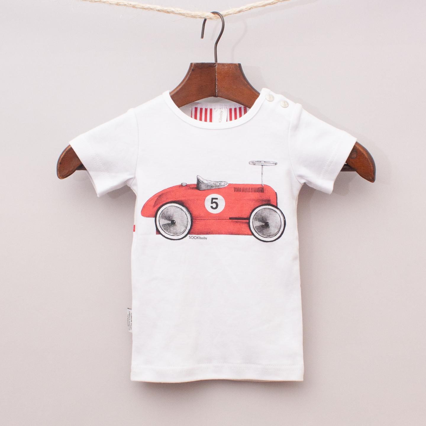 Sooki Baby "brand new with tags" white t-shirt with red race car on the front and striped back detail *100% Cotton