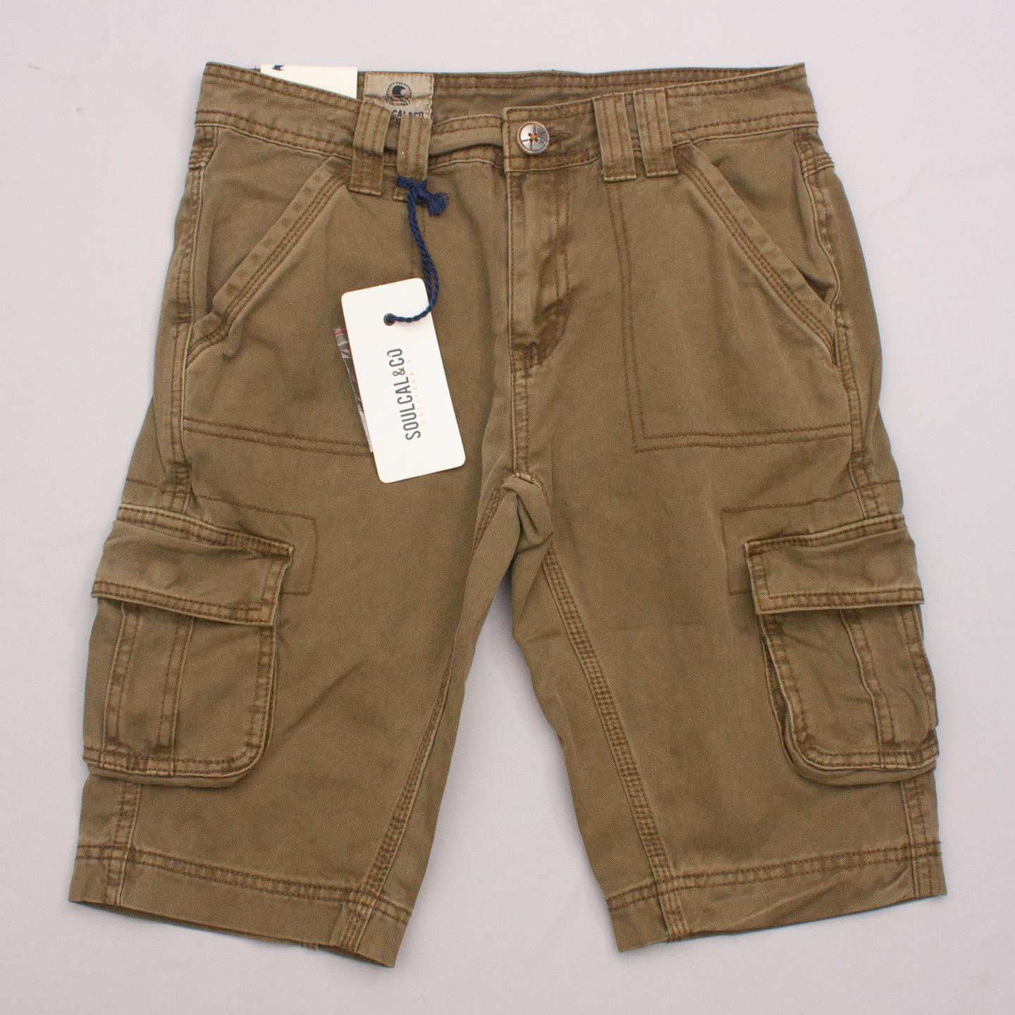 SoulCal & Co khaki cargo shorts with multiple pockets, belt loops and button/zip fastening *Marked size 11-12