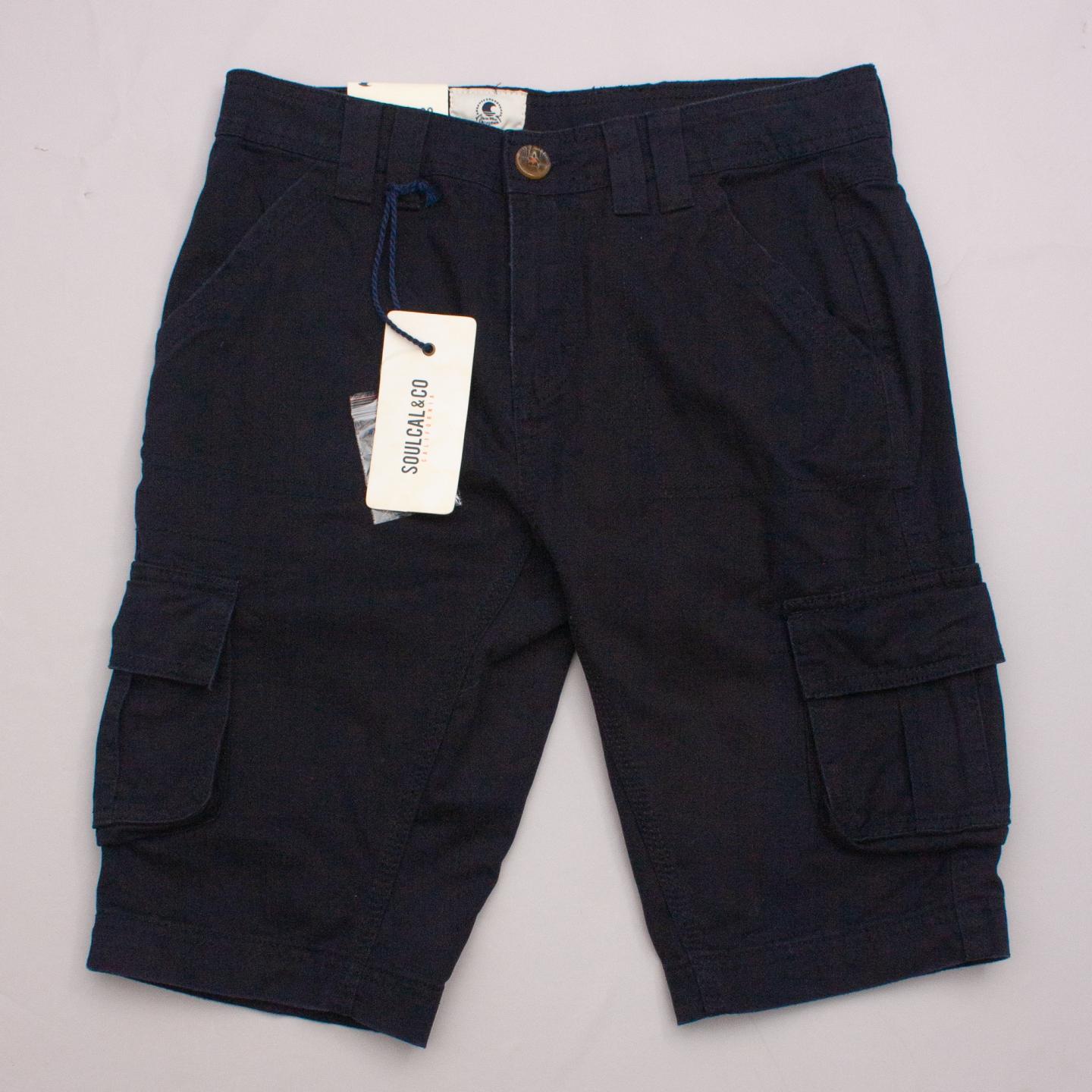 SoulCal & Co navy blue cargo shorts with multiple pockets, belt loops and button/zip fastening *Marked size 11-12