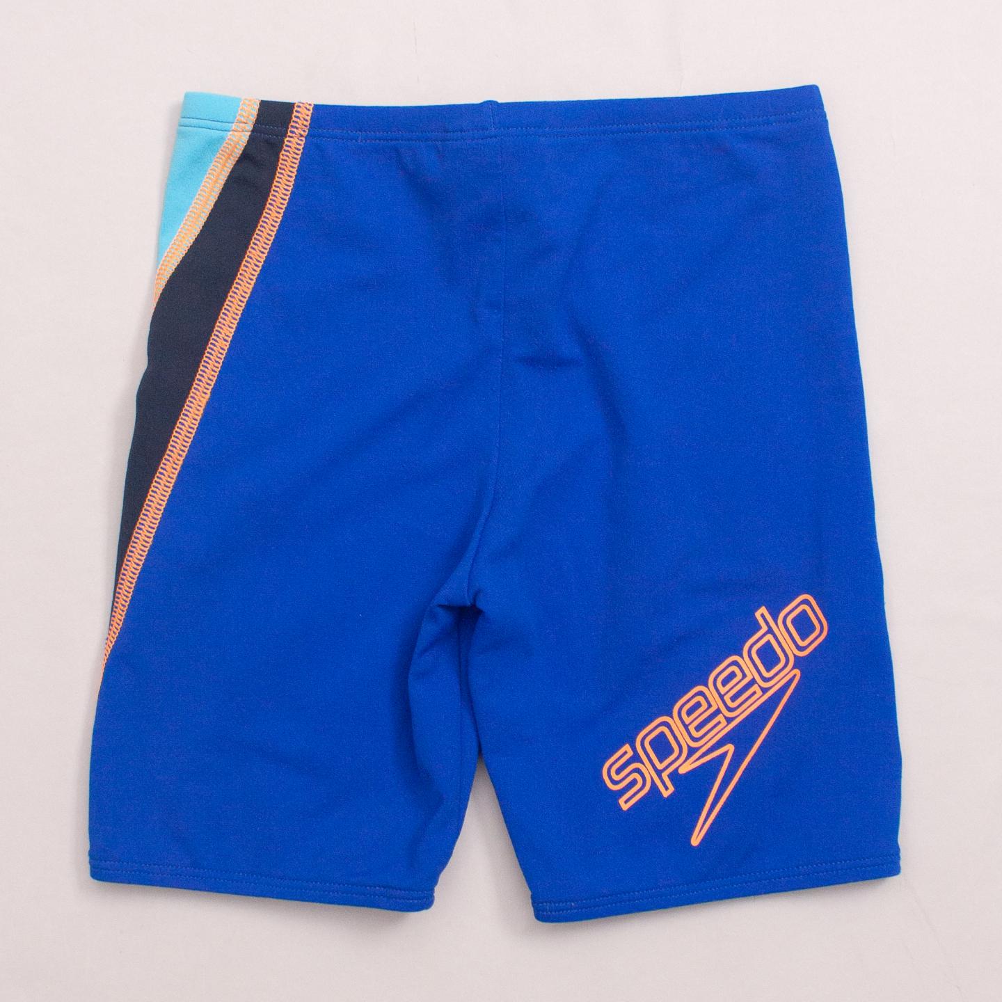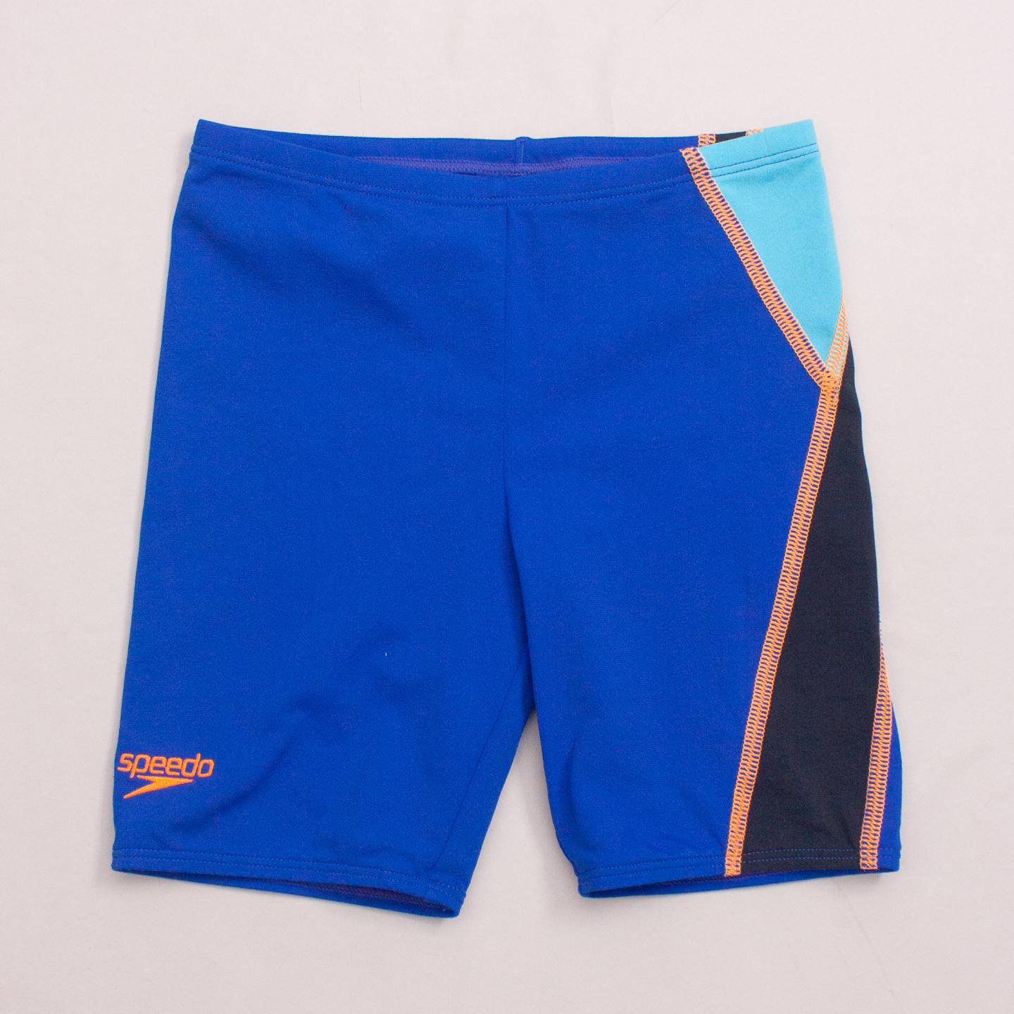 Speedo blue and black swim shorts with orange stitching detail, elastic waistband and drawstring *Polyester Blend