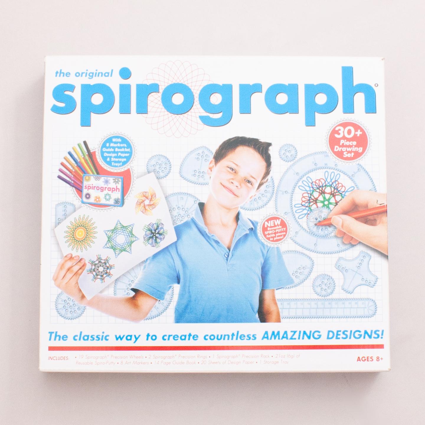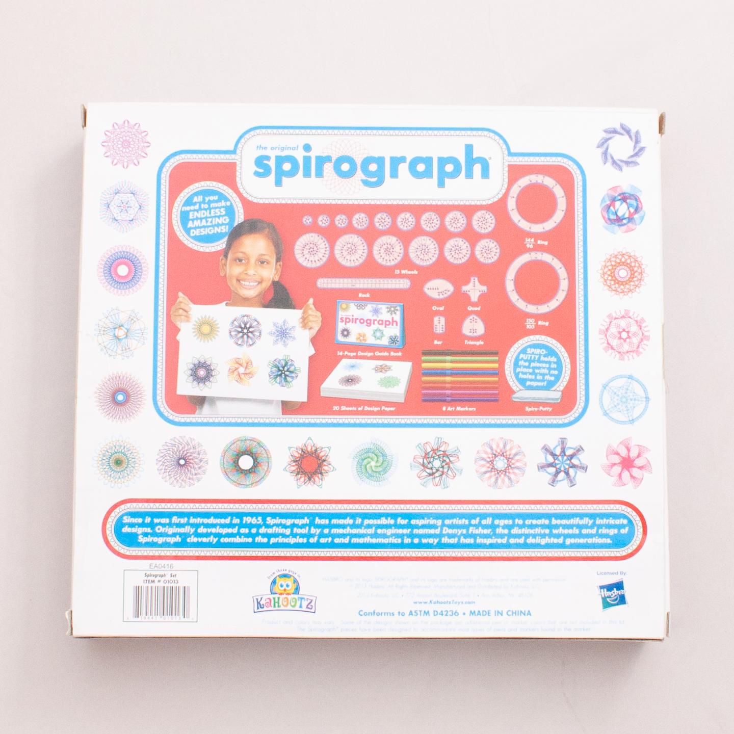 Spirograph drawing set with 30+ pieces and includes; 8 markers, guide booklet, design paper and storage tray - Suitable for 8+