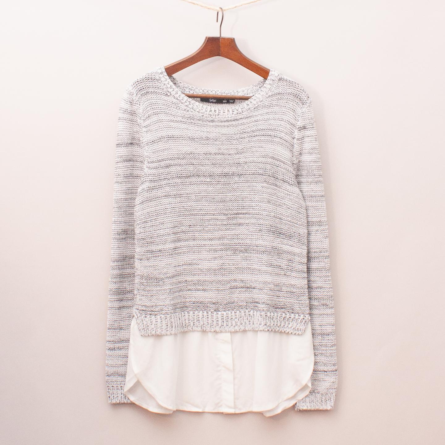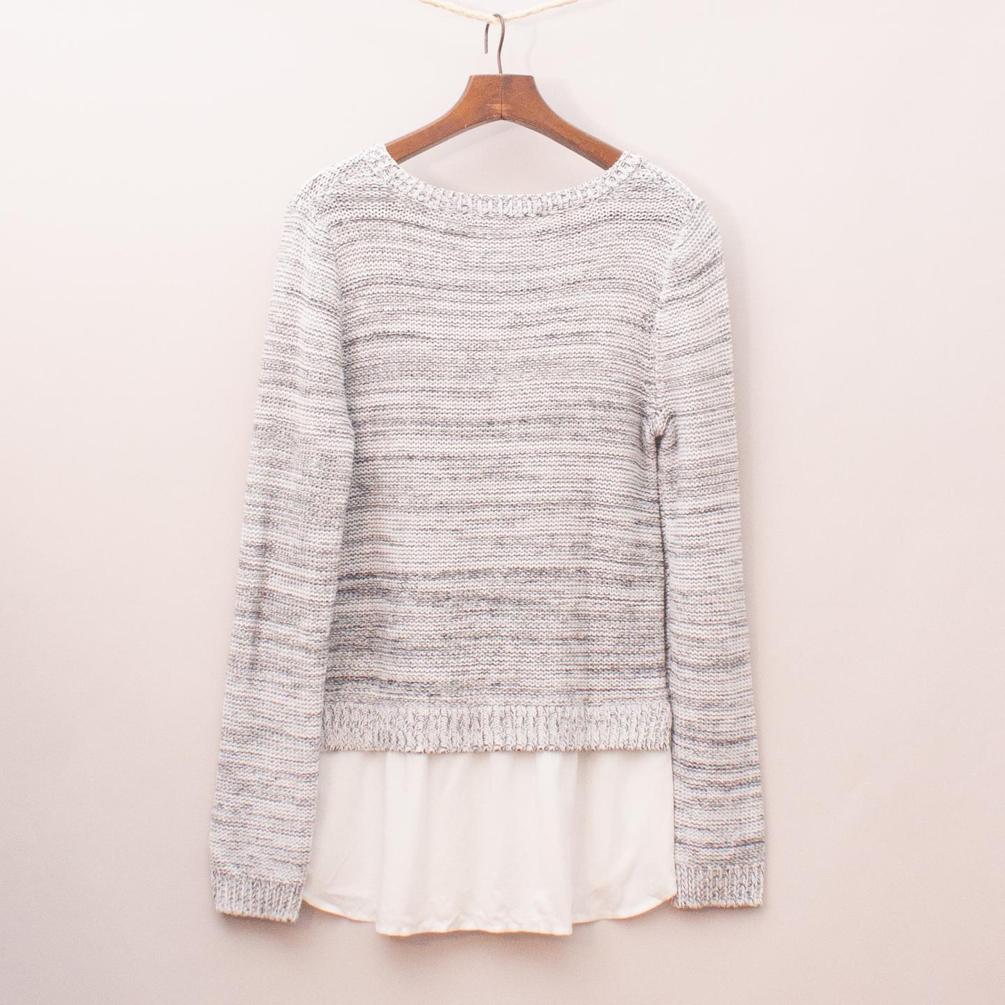 Sportsgirl grey marle knit jumper with contrasting white shirt-like hemline and ribbed neckline and cuffs *50% Cotton, 50% Acrylic