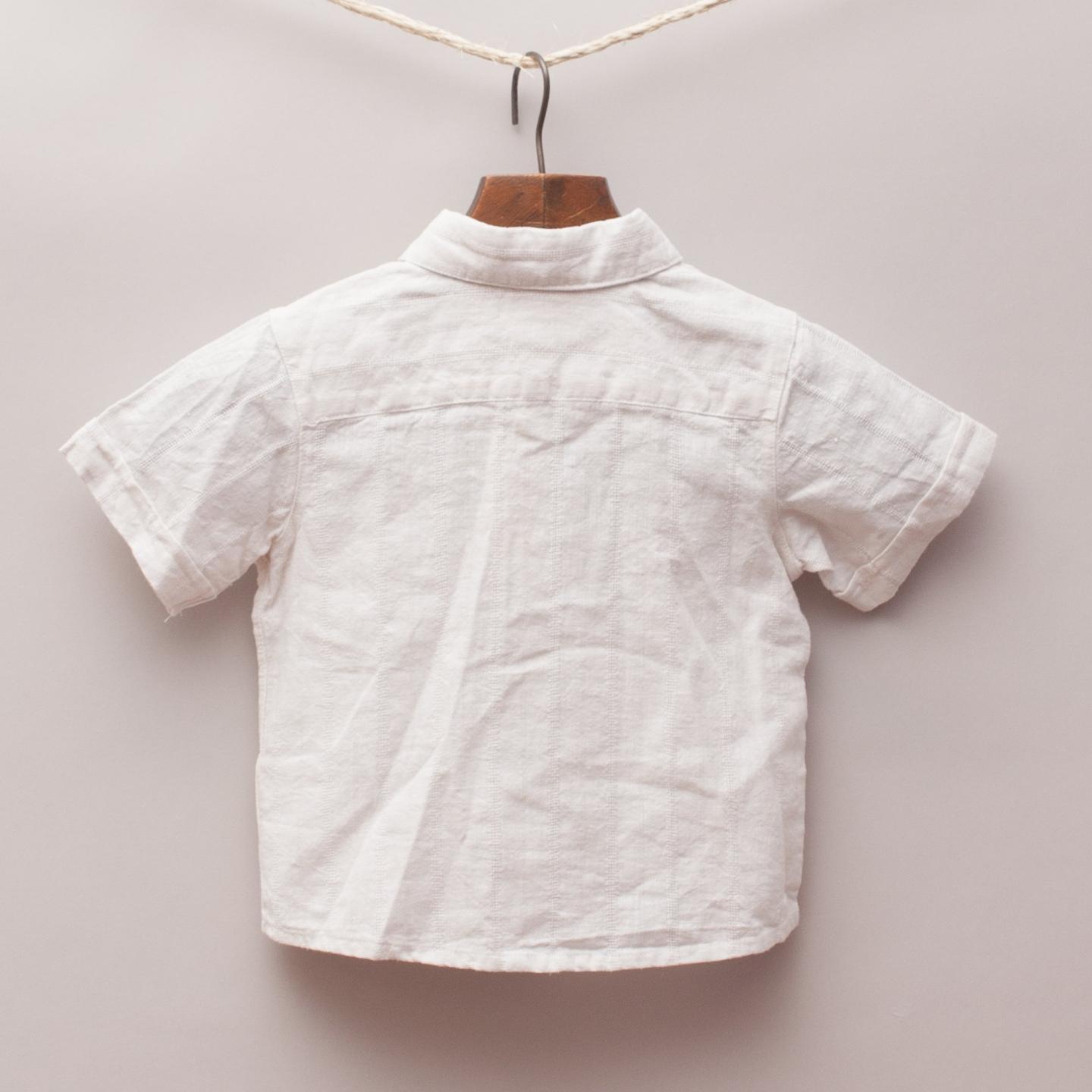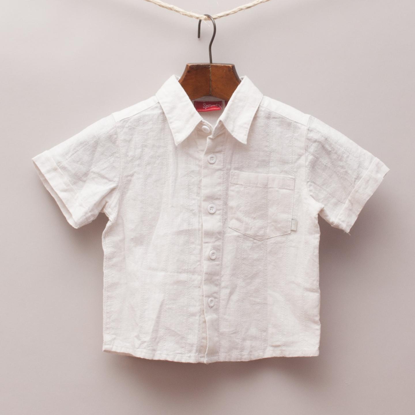 Sprout "brand new with tags" soft cotton short sleeve shirt with single front pocket, rolled cuffs, textured pin stripe throughout and white button down front
