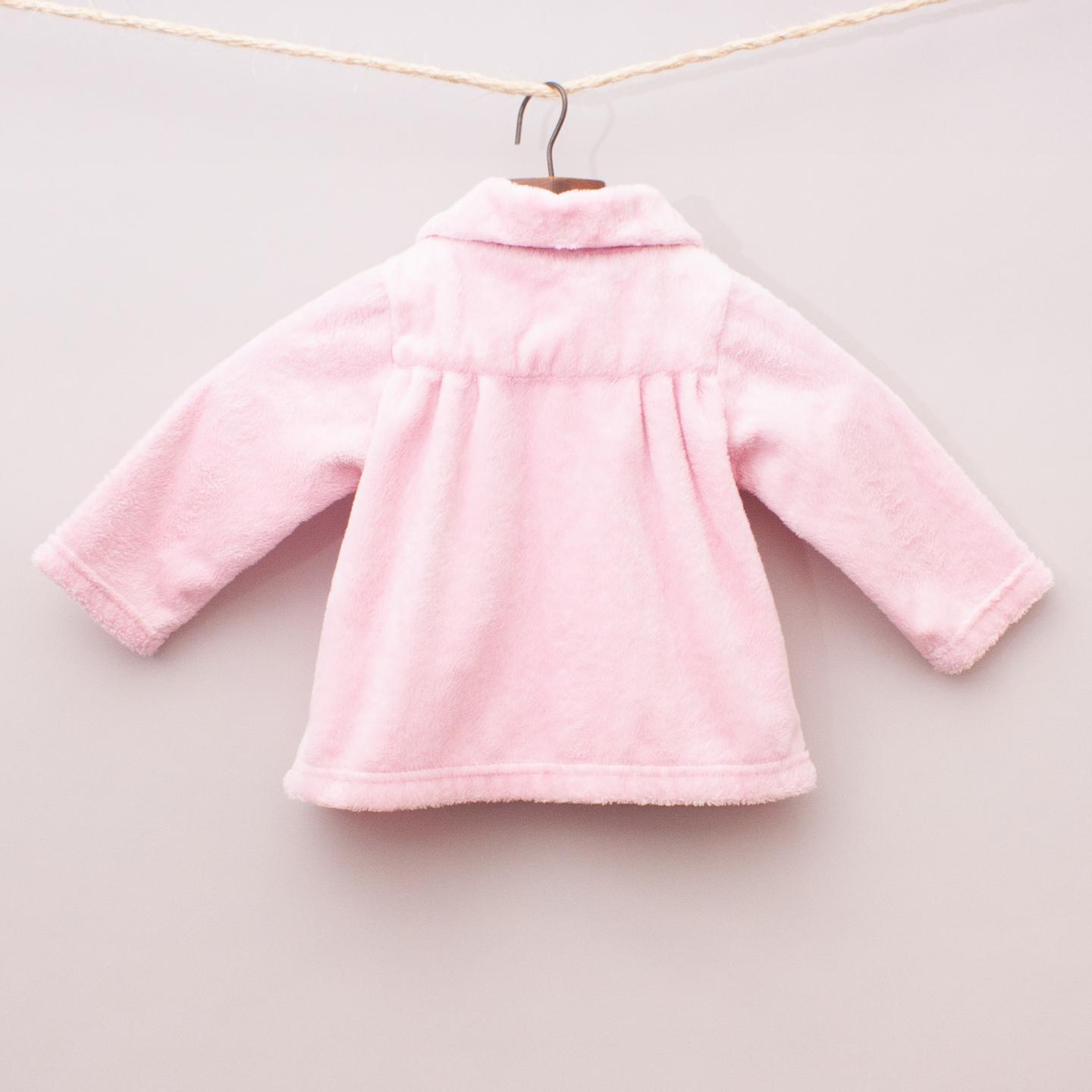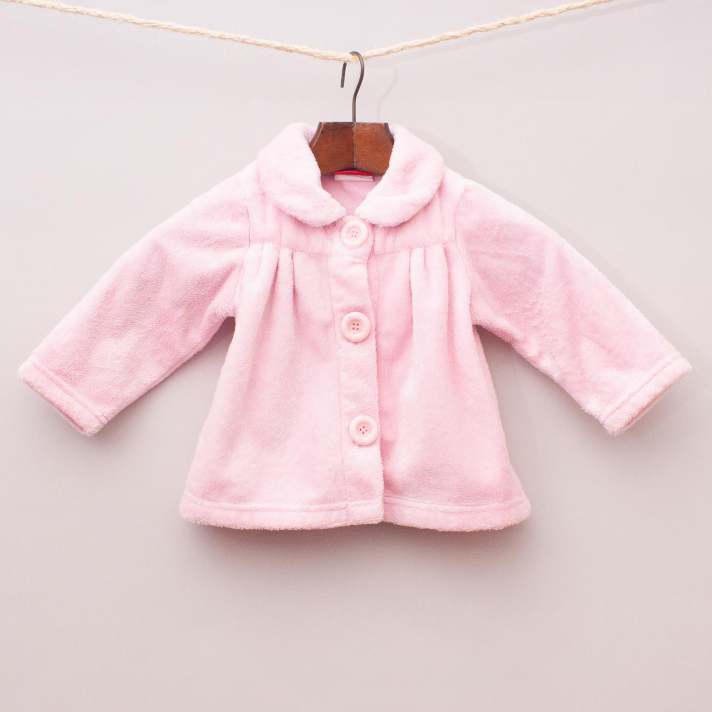 Sprout pastel pink faux fur jacket with pleated front, rolled collar and oversized pink buttons *Polyester/Cotton/Elastane Blend