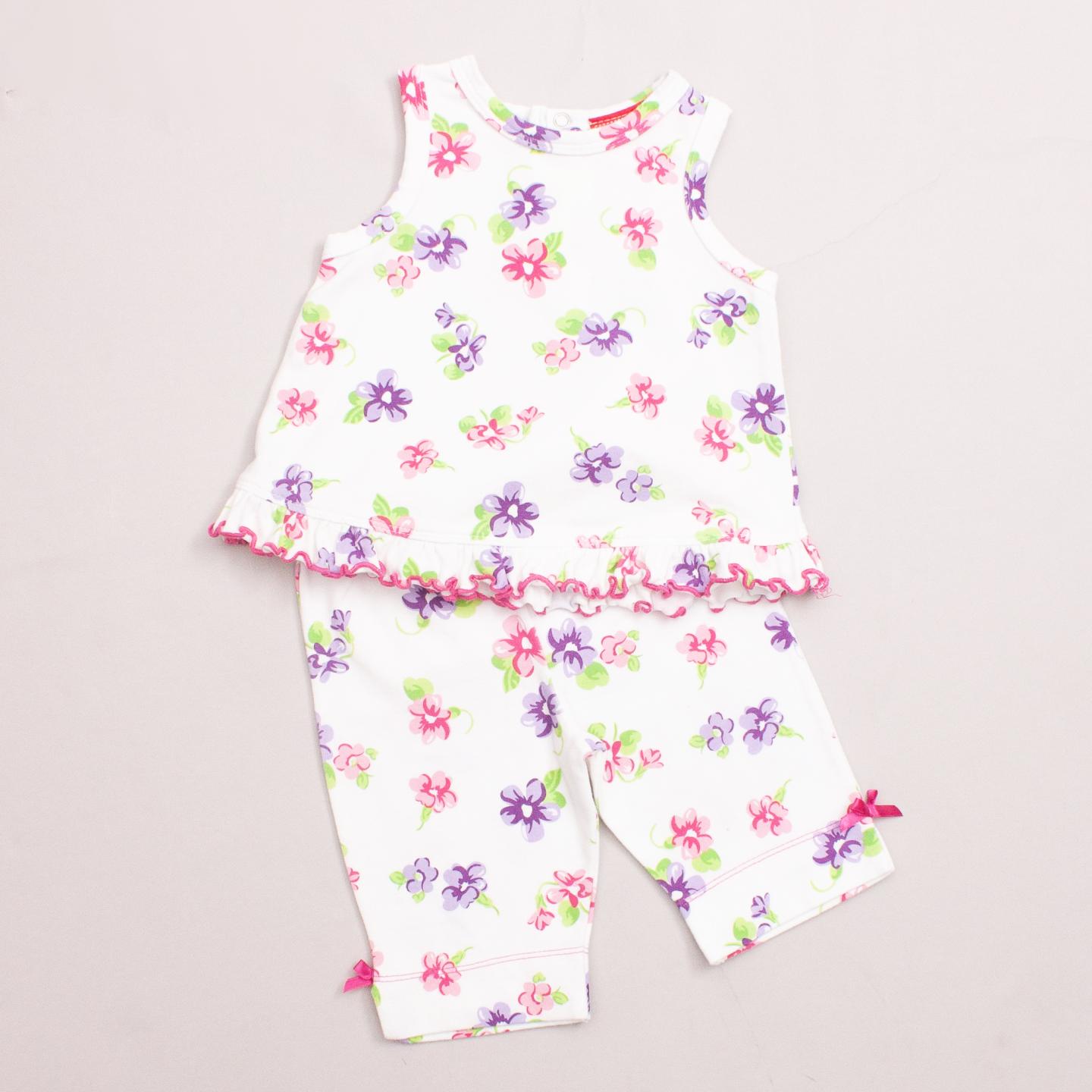 Sprout white and floral patterned singlet with ruffle hemline and matching patterned pants with elastic waistband *95% Cotton, 5% Elastane