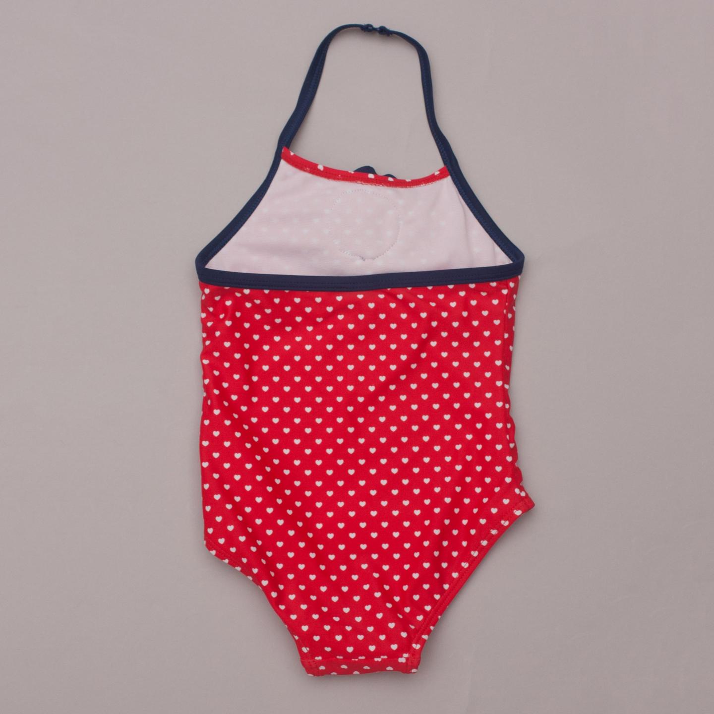 Sprout "brand new with tags" red bathing suit with white heart print throughout and navy blue halter strap