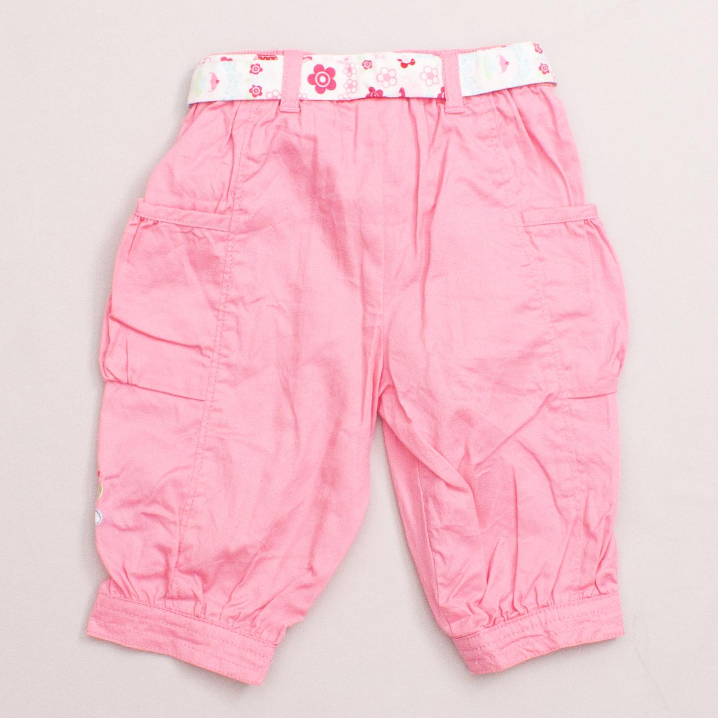 Sprout candy pink pants with embroidered flowers throughout, two side pockets, floral patterned belt and elastic waistband *100% Cotton