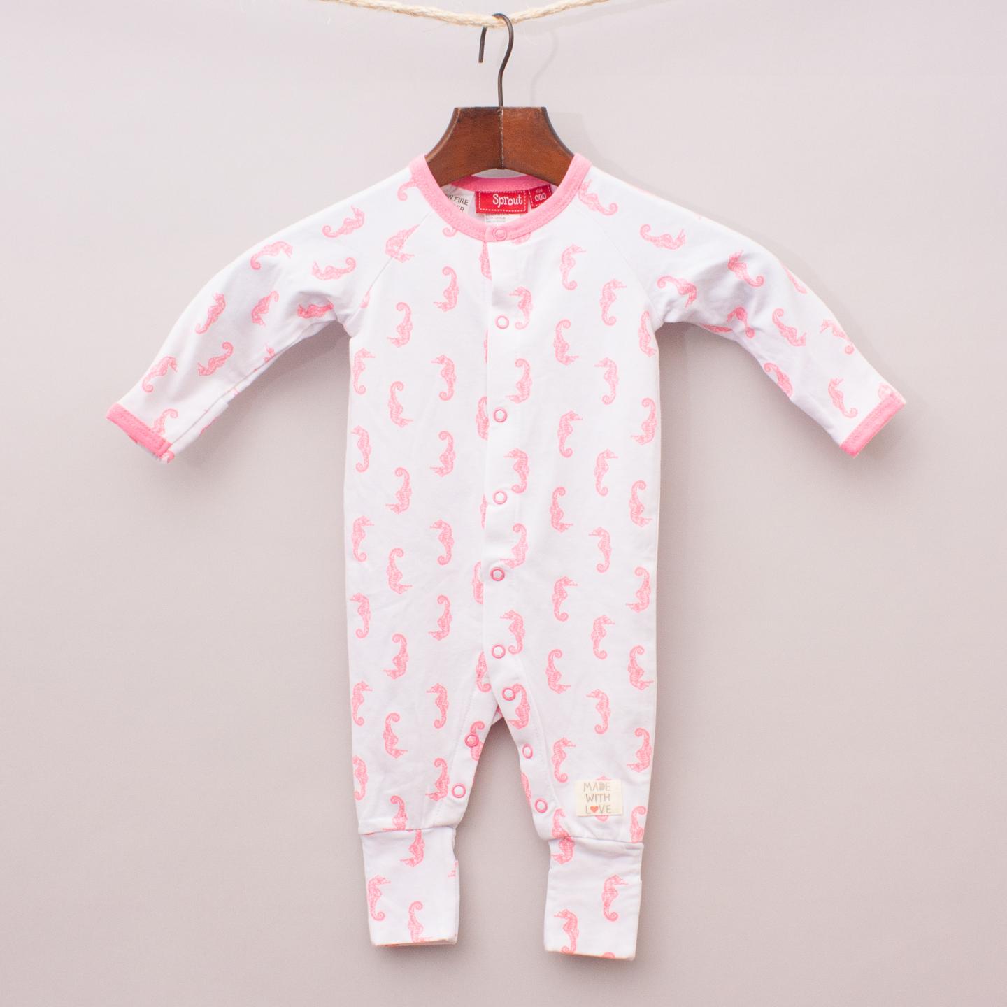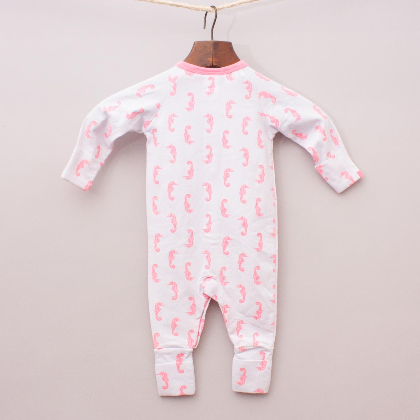 Sprout "brand new with tags" white and hot pink seahorse patterned romper with pink trim and full button down front *95% Cotton, 5% Elastane