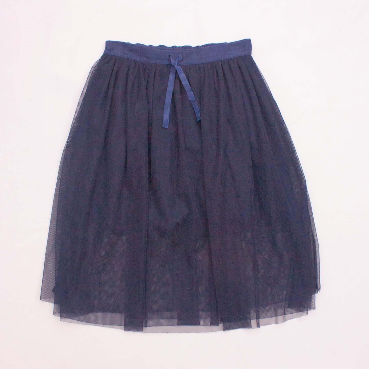 Stella McCartney navy blue tulle skirt, fully lined with tie front and elastic waistband *100% Polyester Outer, 100% Cotton Lining
