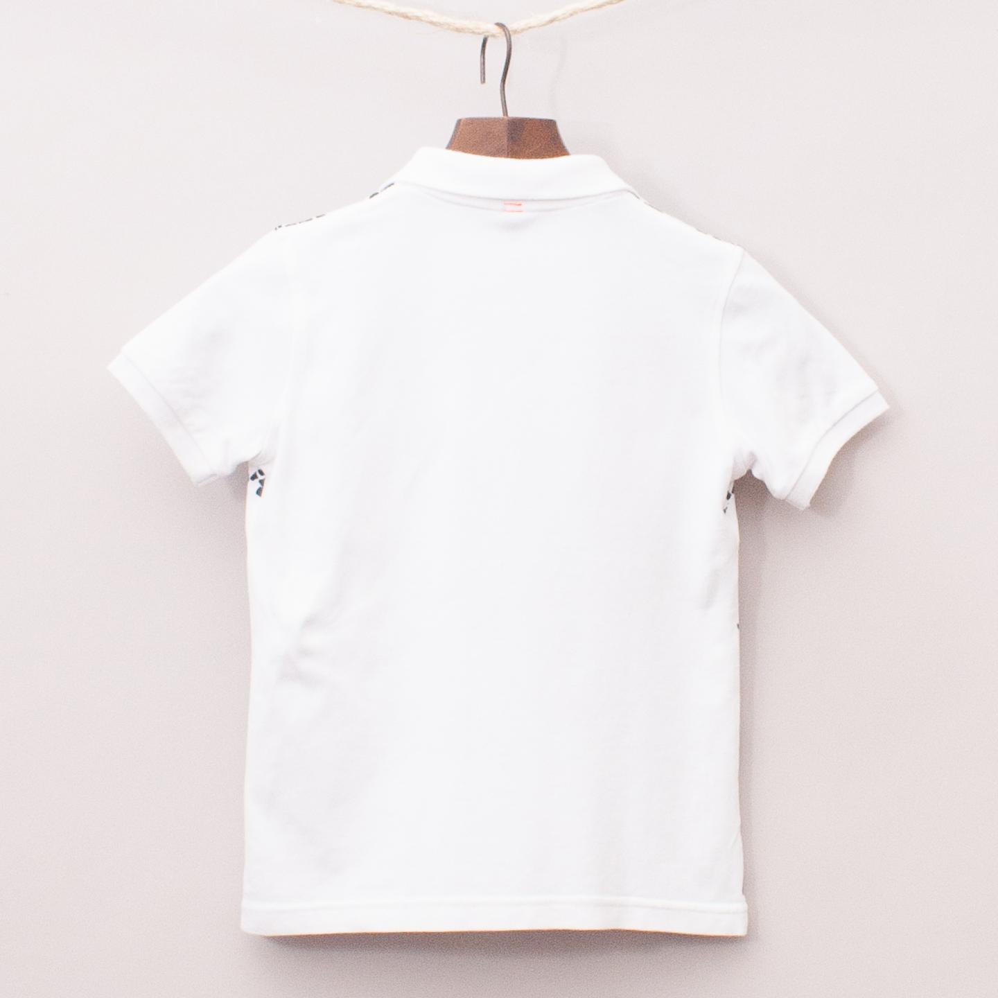 Sun68 white and black floral patterned short sleeve polo shirt with button down front *95% Cotton, 5% Spandex