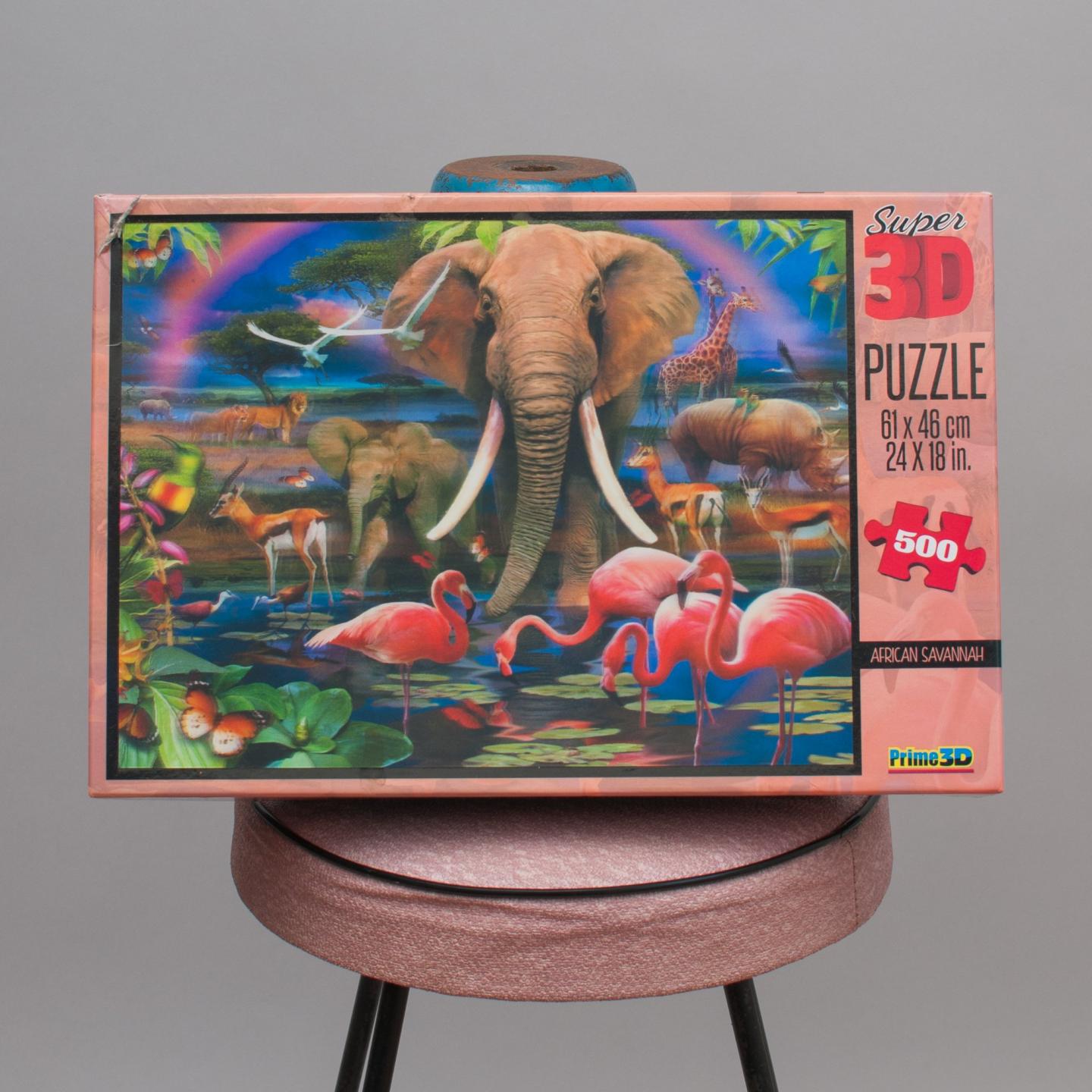Super 3D puzzle of an African savannah with multiple animals, 500 pieces *Missing 1 piece still very effective
