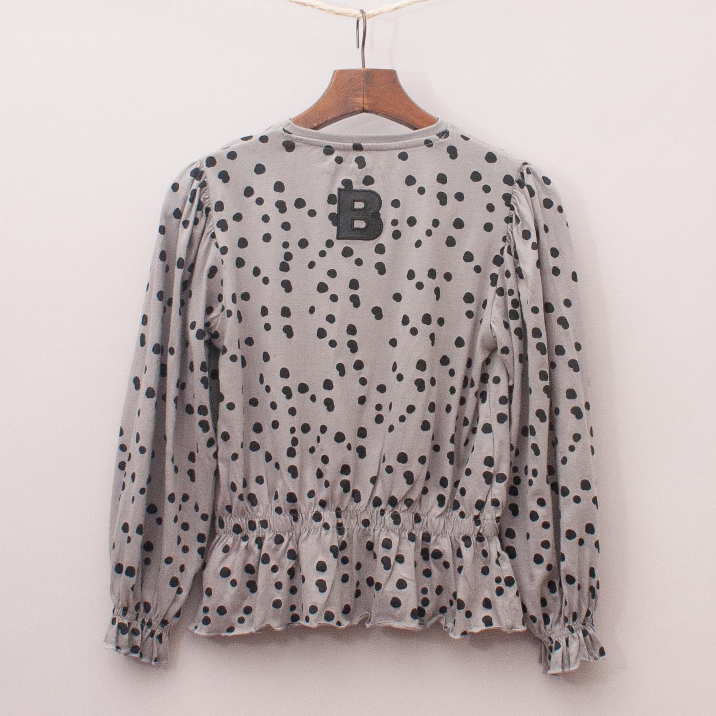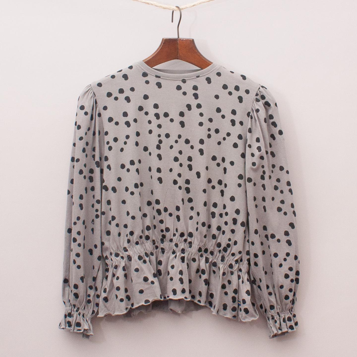 The Brand grey and polka dot long sleeve with elastic ruffle hemline *100% Cotton