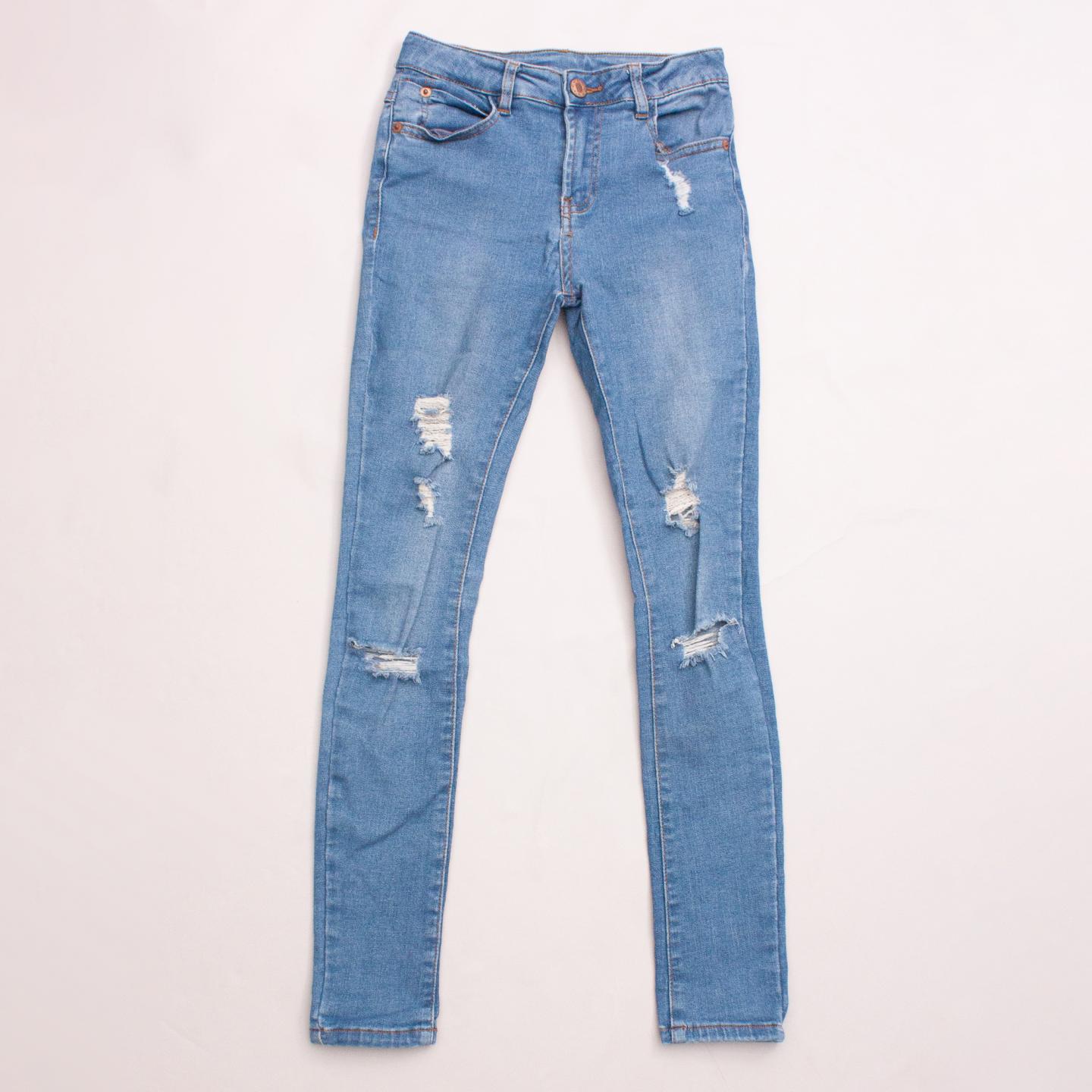 Tilii distressed skinny blue jeans with front and back pockets, belt loops and button/zip fastening
