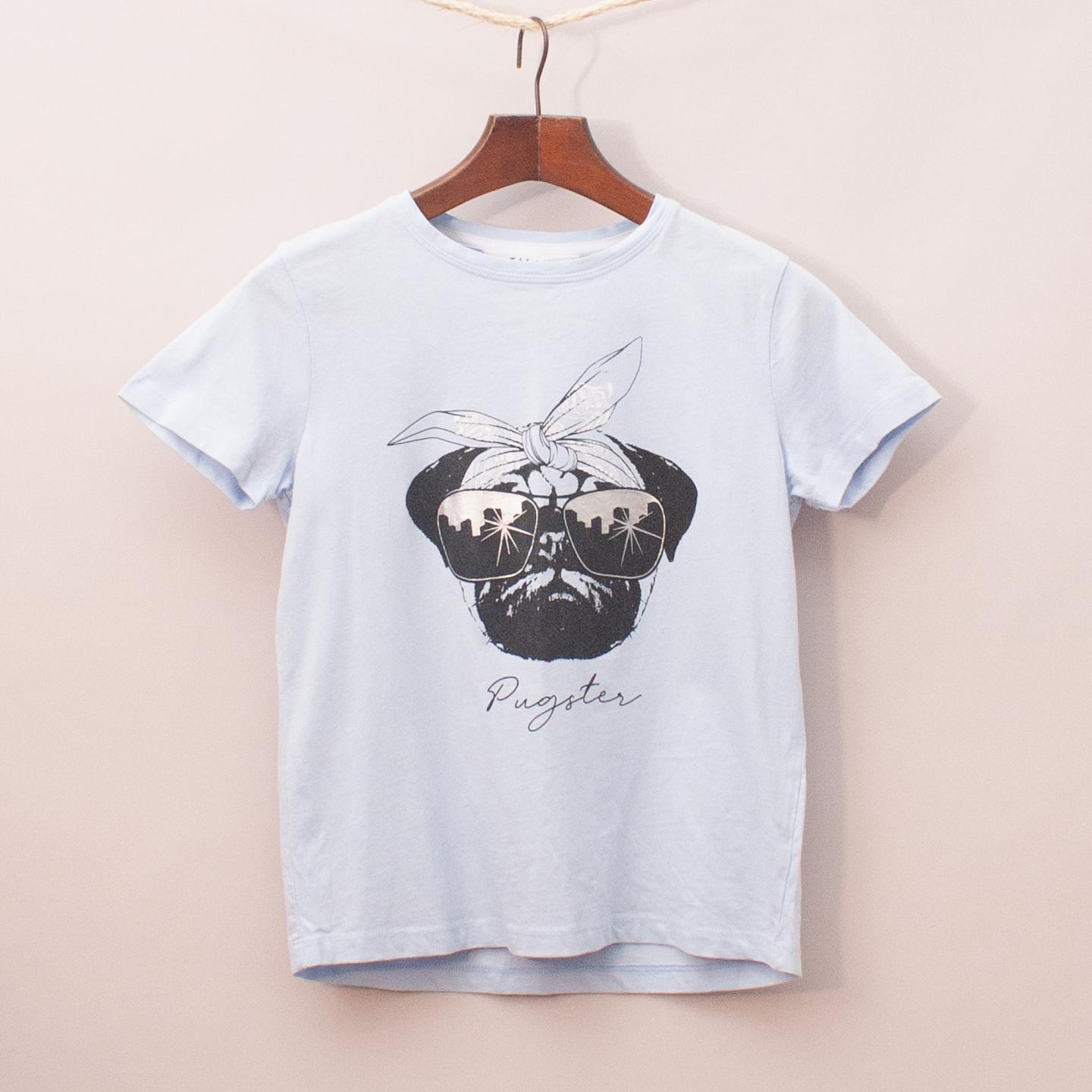 Tilii pastel blue t-shirt with printed pug on the front *100% Cotton