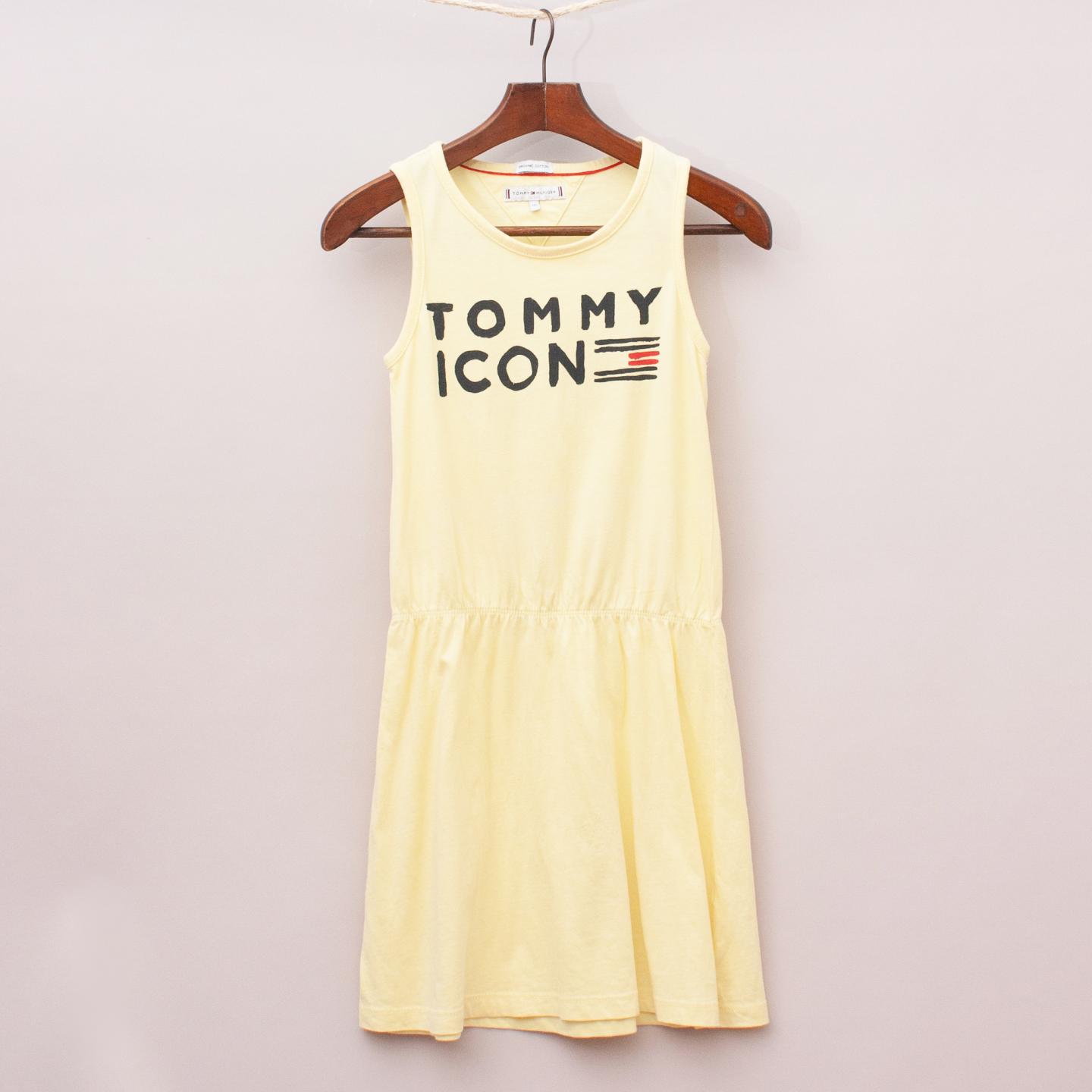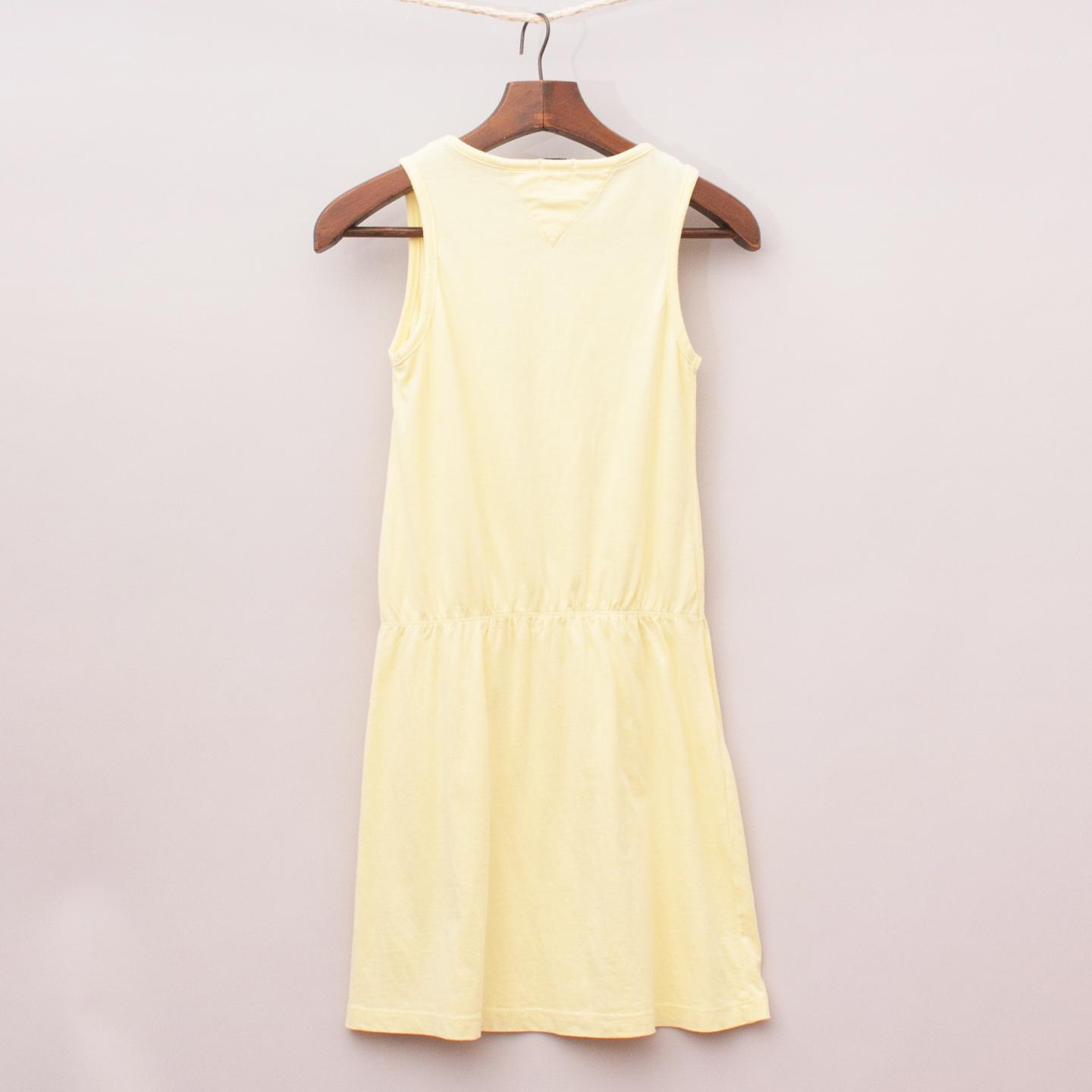 Tommy Hilfiger pastel yellow singlet style dress with elastic waistband and printed logo across the front *100% Organic Cotton