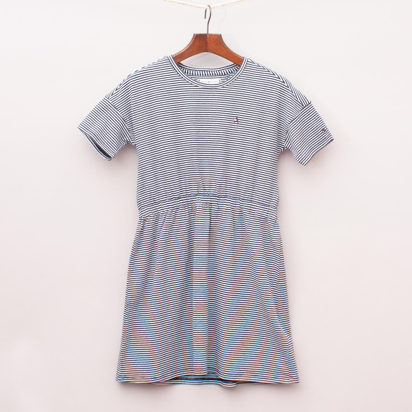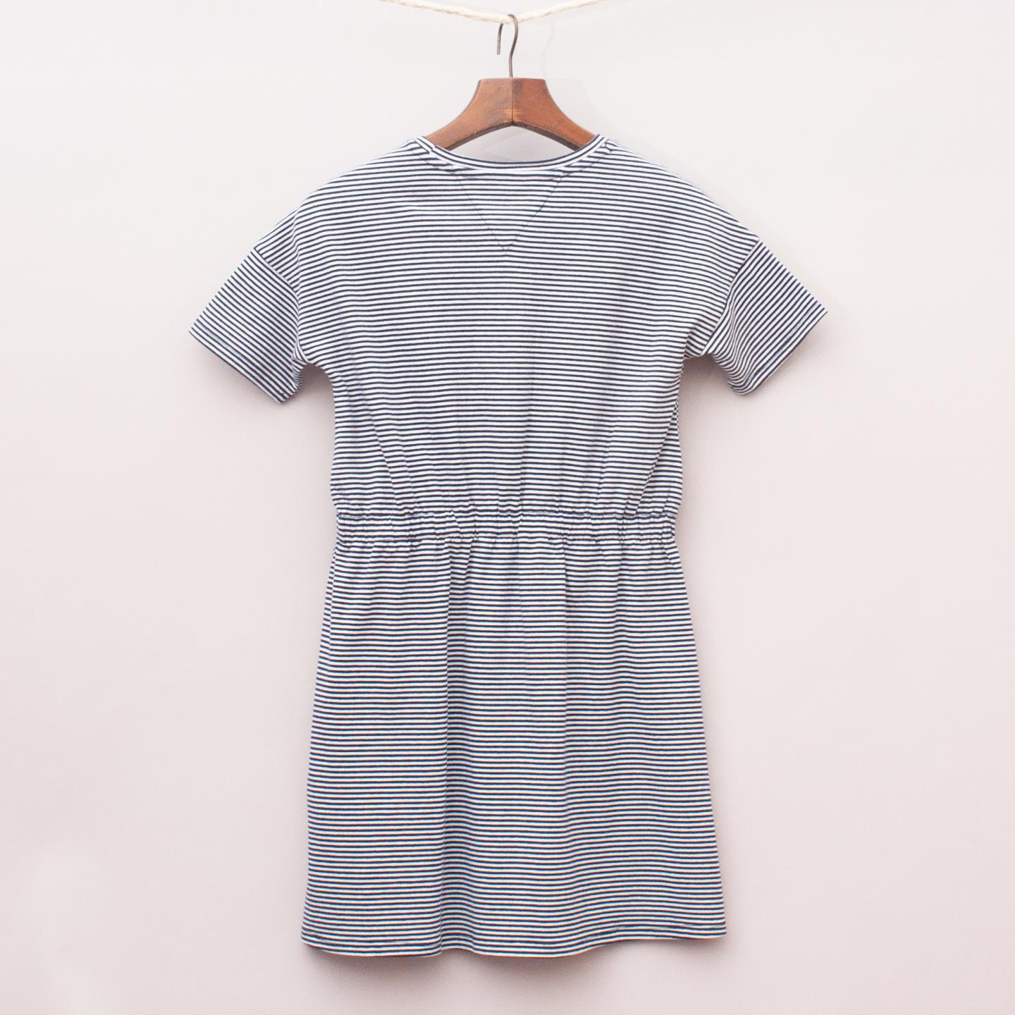 Tommy Hilfiger "brand new with tags" blue and white striped dress with 3/4 sleeves, elastic waistband and stretch fabric *97% Cotton, 3% Elastane