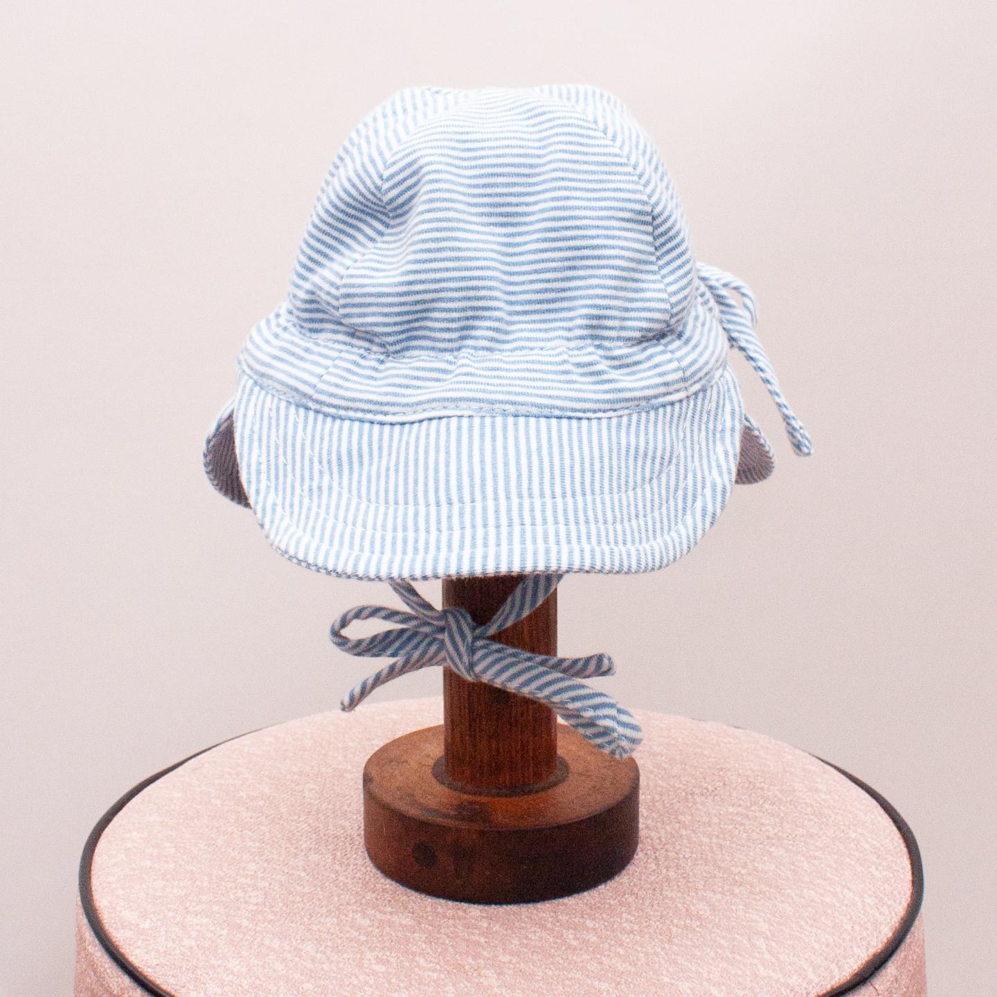 Toshi blue and white striped hat with under chin tie and adjustable tie strap - Size XXS