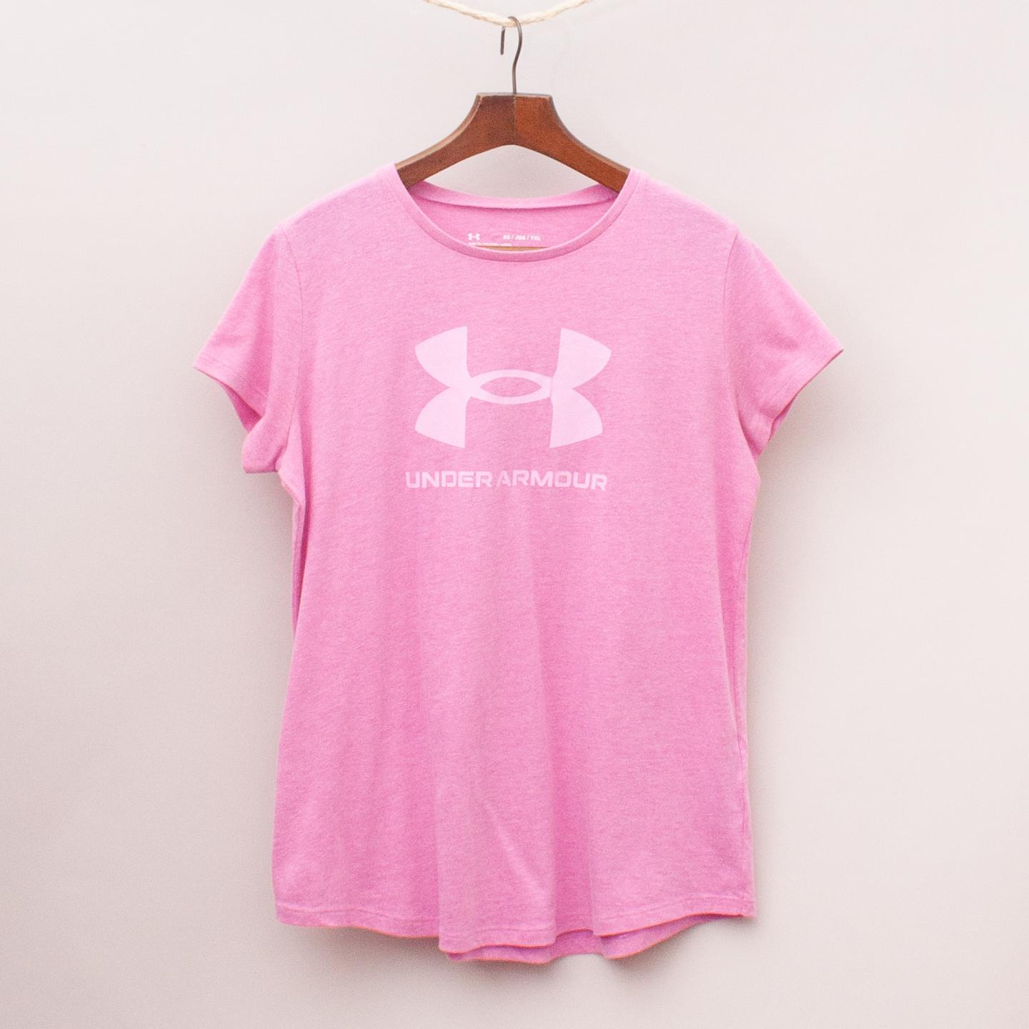 Under Armour musk pink sports t-shirt with pastel logo printed across the front *60% Cotton, 40% Polyester